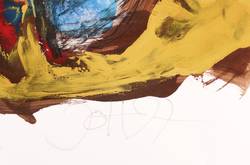 1997. Mischtechnik / Gouache & Ölfarben, über Farblithografie, auf Hahnemühle-Bütten. – Originale Künstlergrafik, von Johannes Heisig. – Unikat. – 44,0 x 28,0 cm (Darstellung), 70 x 50 cm (Passepartout).