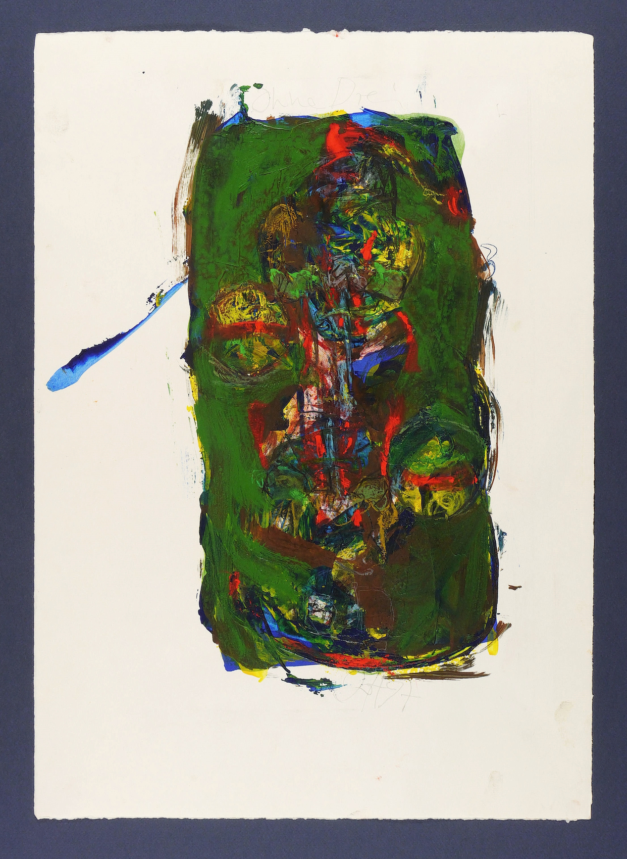 1997. Mischtechnik / Gouache & Ölfarben, über Farblithografie, auf Hahnemühle. – Originale Künstlergrafik, von Johannes Heisig. – Unikat. – 48,0 x 29,0 cm (Darstellung), 70 x 50 cm (Passepartout).