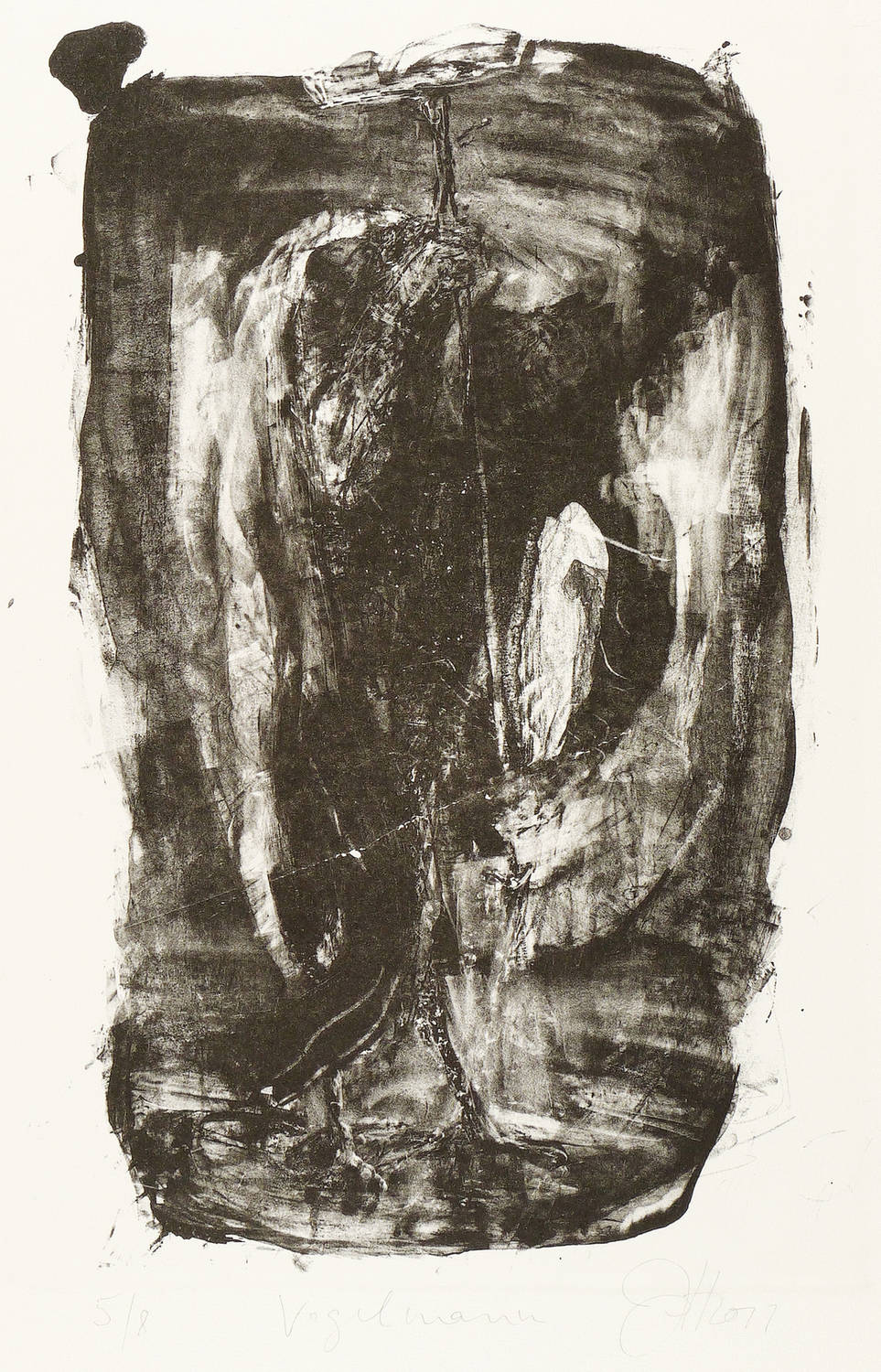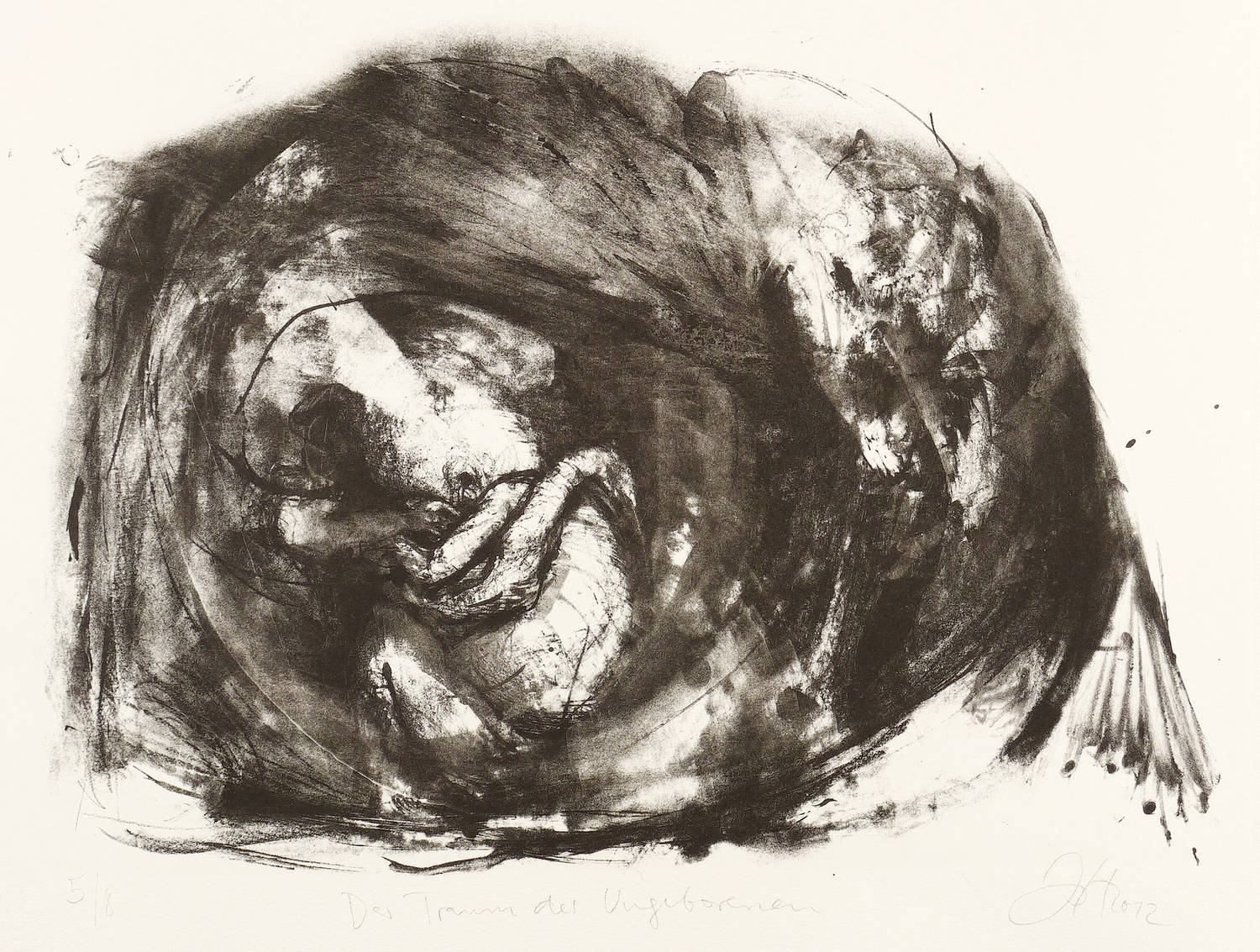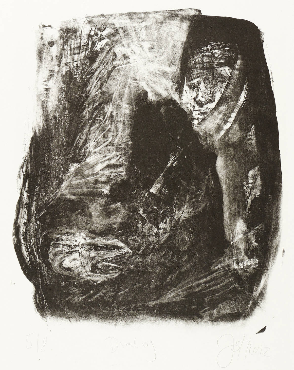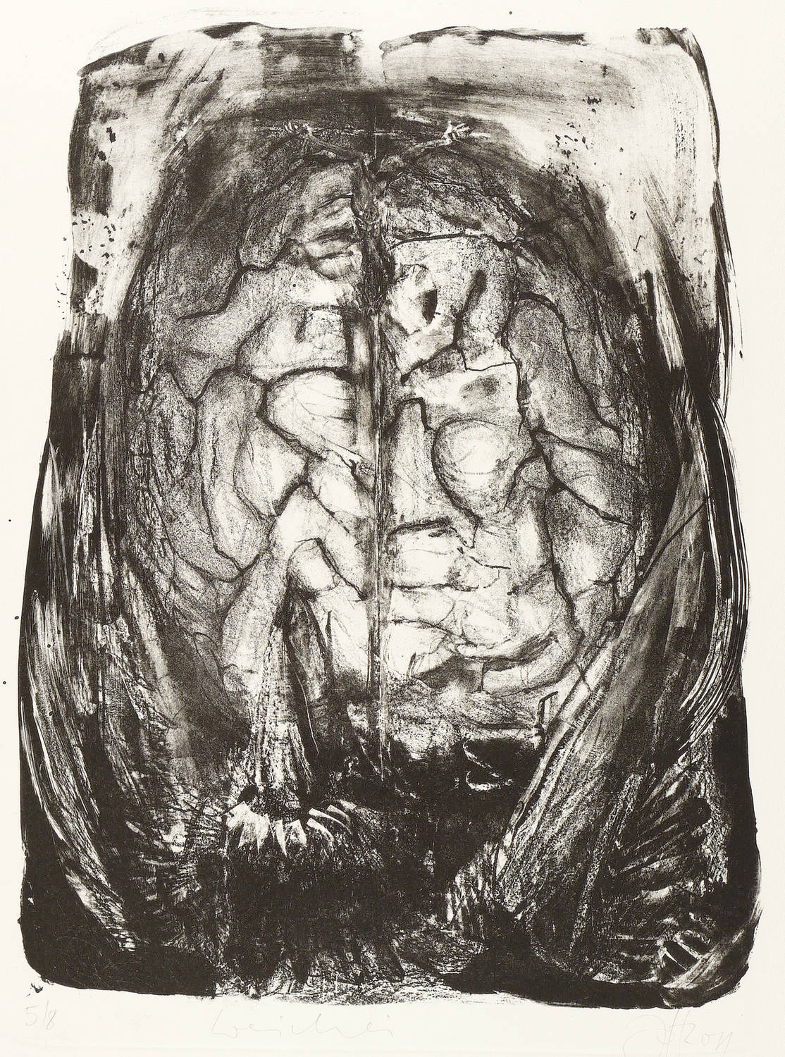 Jedes Blatt in Bleistift signiert und datiert. Dazu jeweils betitelt und nummeriert. – Zum Gedichtband ″Crow. From the Life and the Songs of the Crow″ (1970) des englischen Dichters Ted Hughes. - Herausragendes druckgrafisches Werk von Johannes Heisig. – Die einzelnen Blätter inklusive die leinengebundene Mappe in tadellosem Zustand.