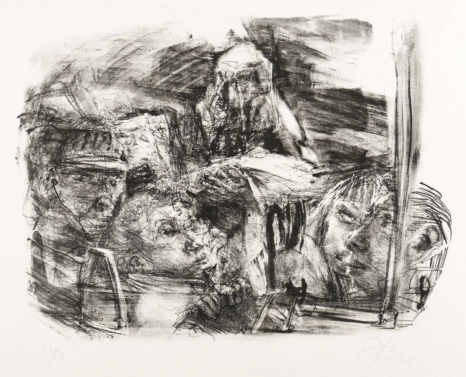 2004. Lithografie / Kreidelithografie, in Schwarz, auf weißem Bütten. – Originale Künstlergrafik, von Johannes Heisig. – Auflage Exemplar Nr. 8/80. – 30,0 x 40,5 cm (Darstellung / Druckbild), 42,5 x 58,5 cm (Blatt).