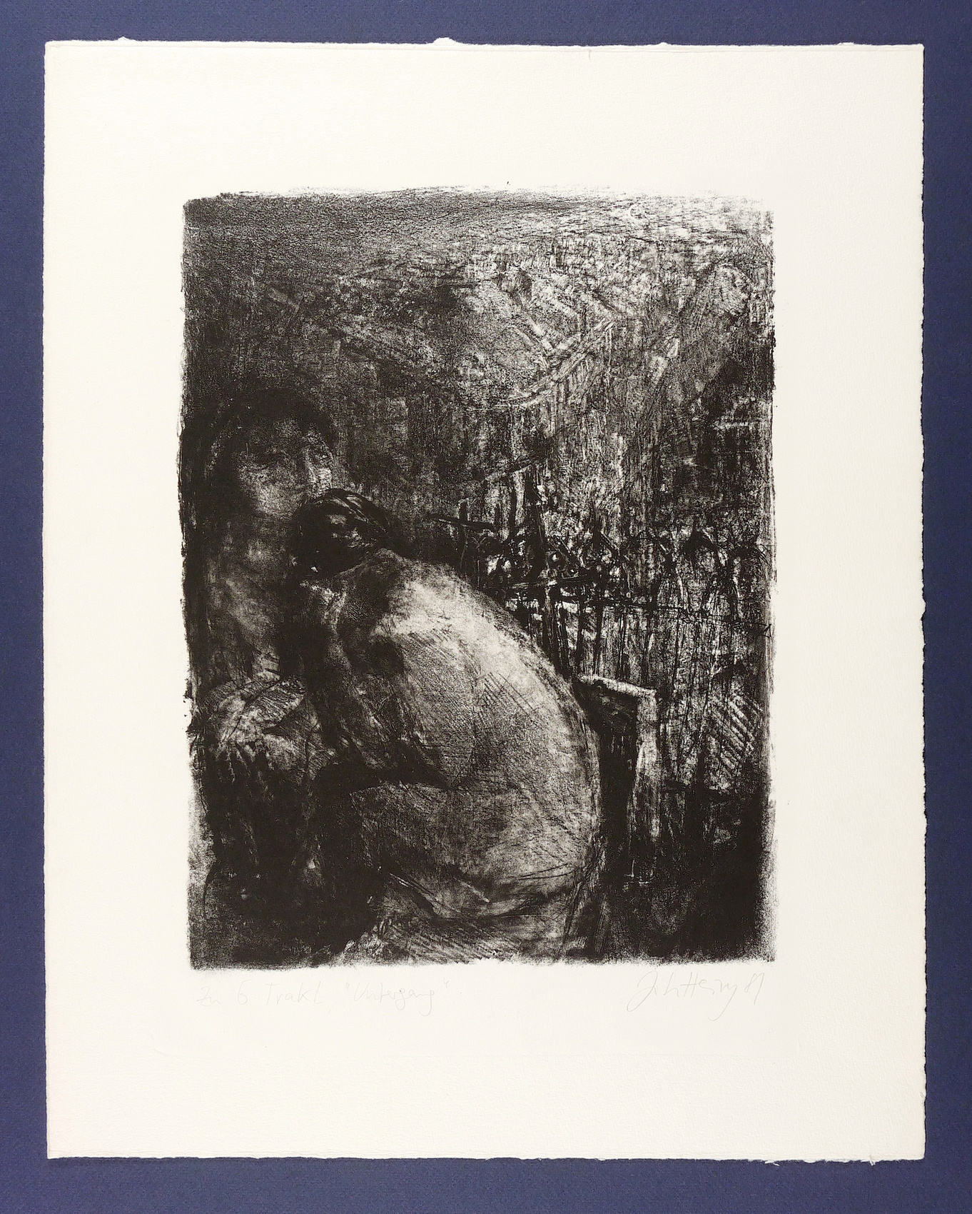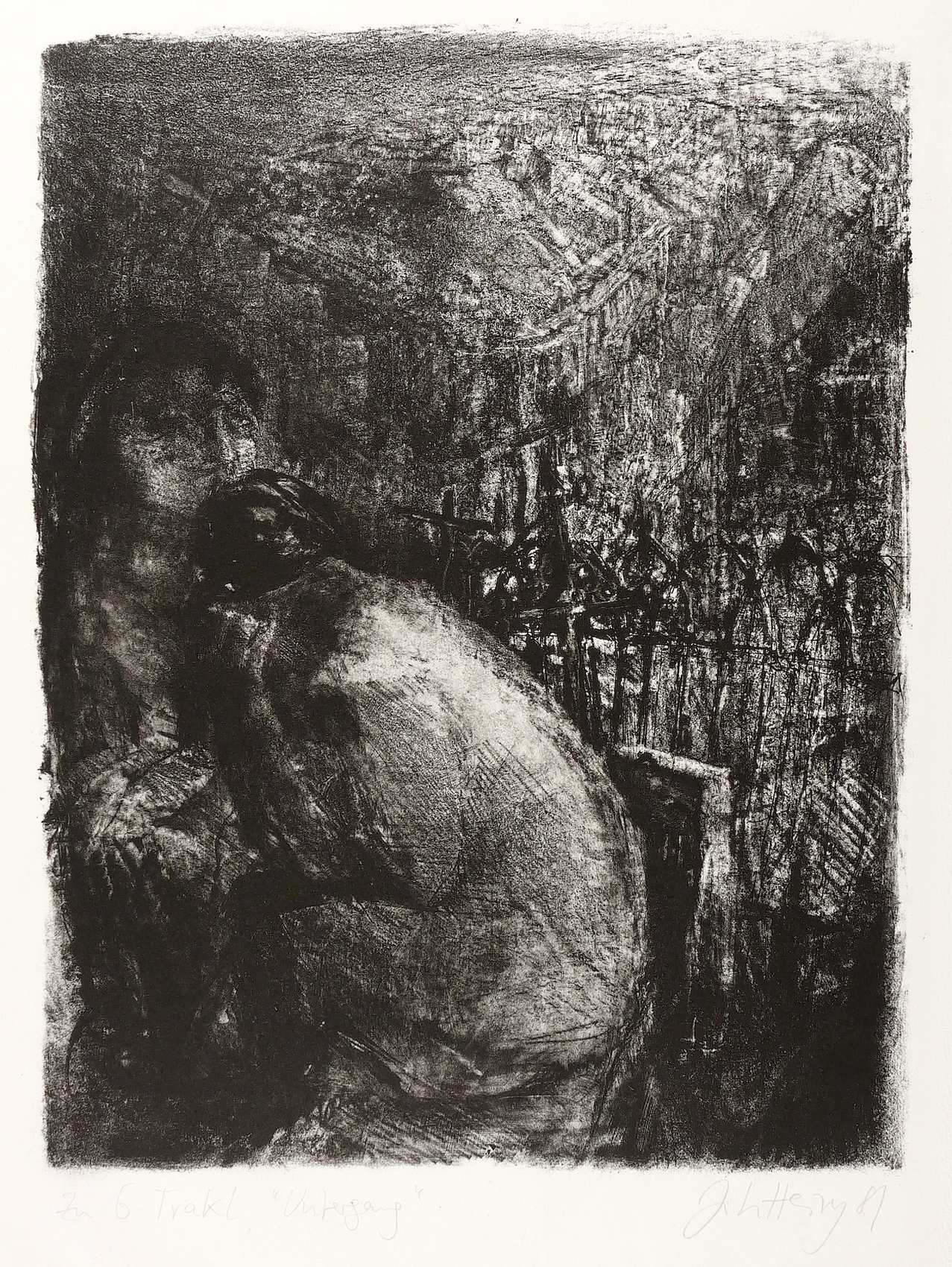 1981. Lithografie / Kreidelithografie, in Schwarz, auf hellchamois Bütten. – Originale Künstlergrafik, von Johannes Heisig. – Druckerexemplar. – 34,5 x 26,5 cm (Darstellung), 40,0 x 29,5 cm (Stein), 50 x 40 cm (Blatt).