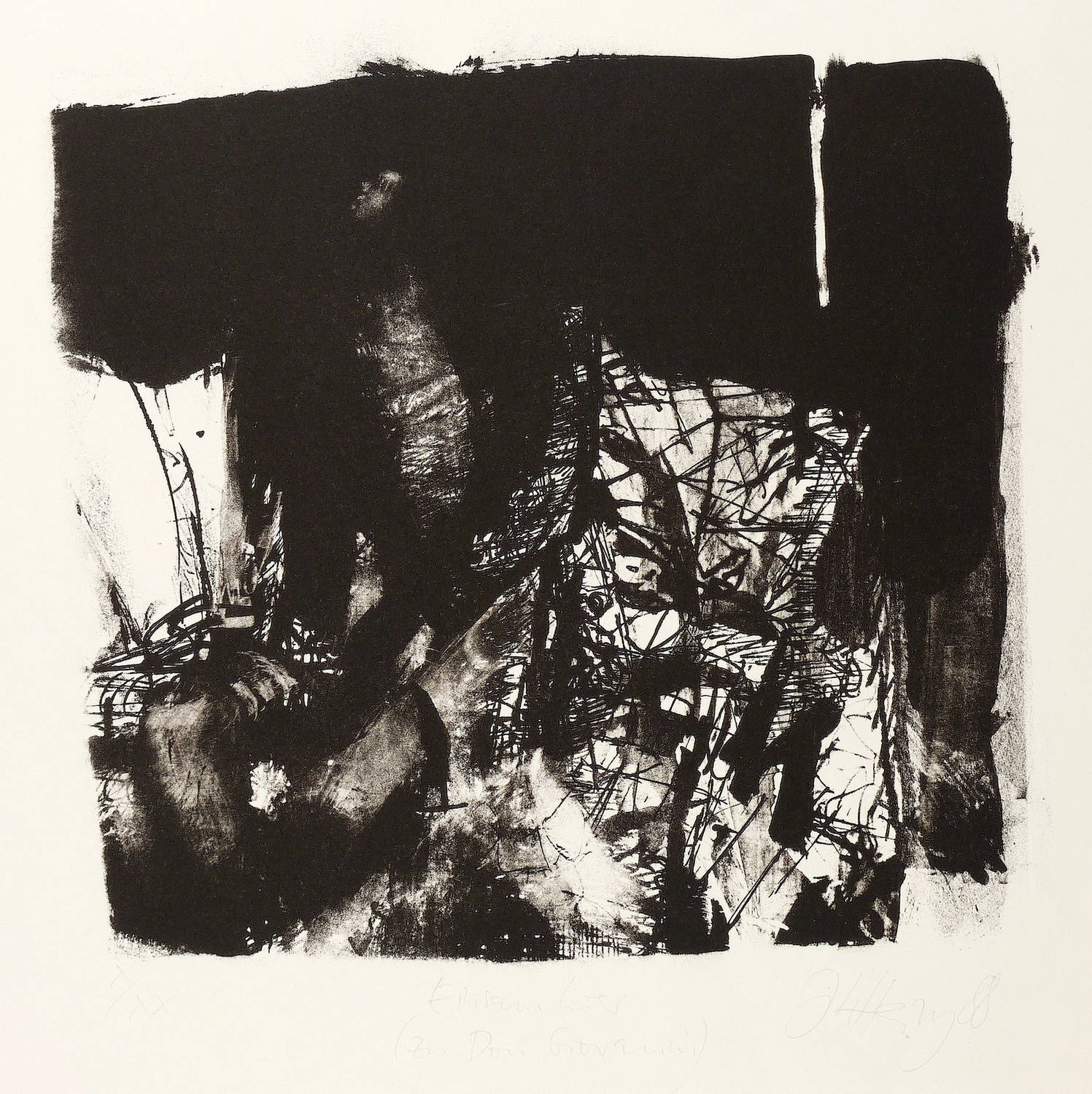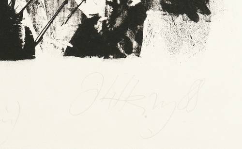1988. Lithografie / Kreidelithografie, in Schwarz, auf hellchamois Hahnemühle. – Originale Künstlergrafik, von Johannes Heisig. – Auflage Exemplar Nr. X/XX. – 24,5 x 26,5 cm (Darstellung), 31,0 x 39,5 cm (Stein), 54 x 40 cm (Blatt).