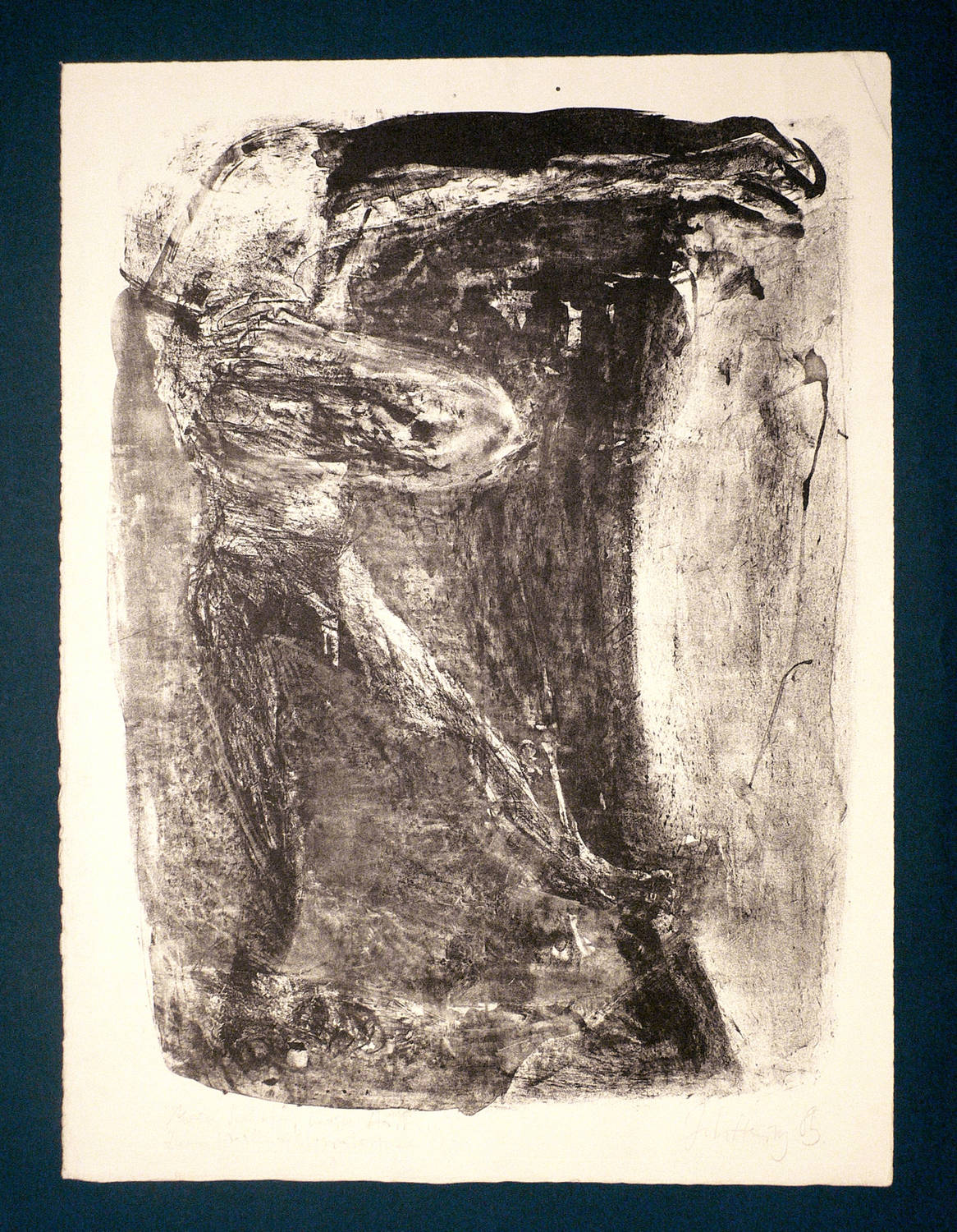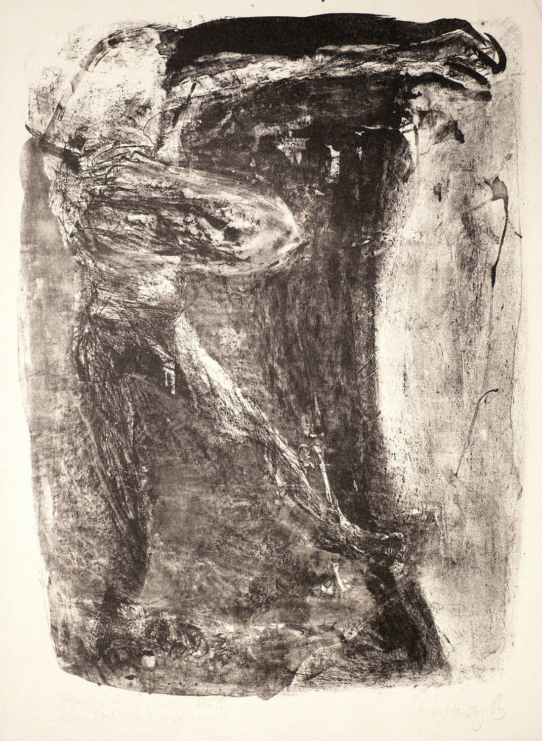1985. Lithografie / Pinsel- und Kreidelithografie, in Schwarz, auf gelblichem Büttenpapier. – Originale Künstlergrafik, von Johannes Heisig. – Druckerexemplar. – 47,5 x 35,5 cm (Darstellung), 53 x 39,5 cm (Blatt).