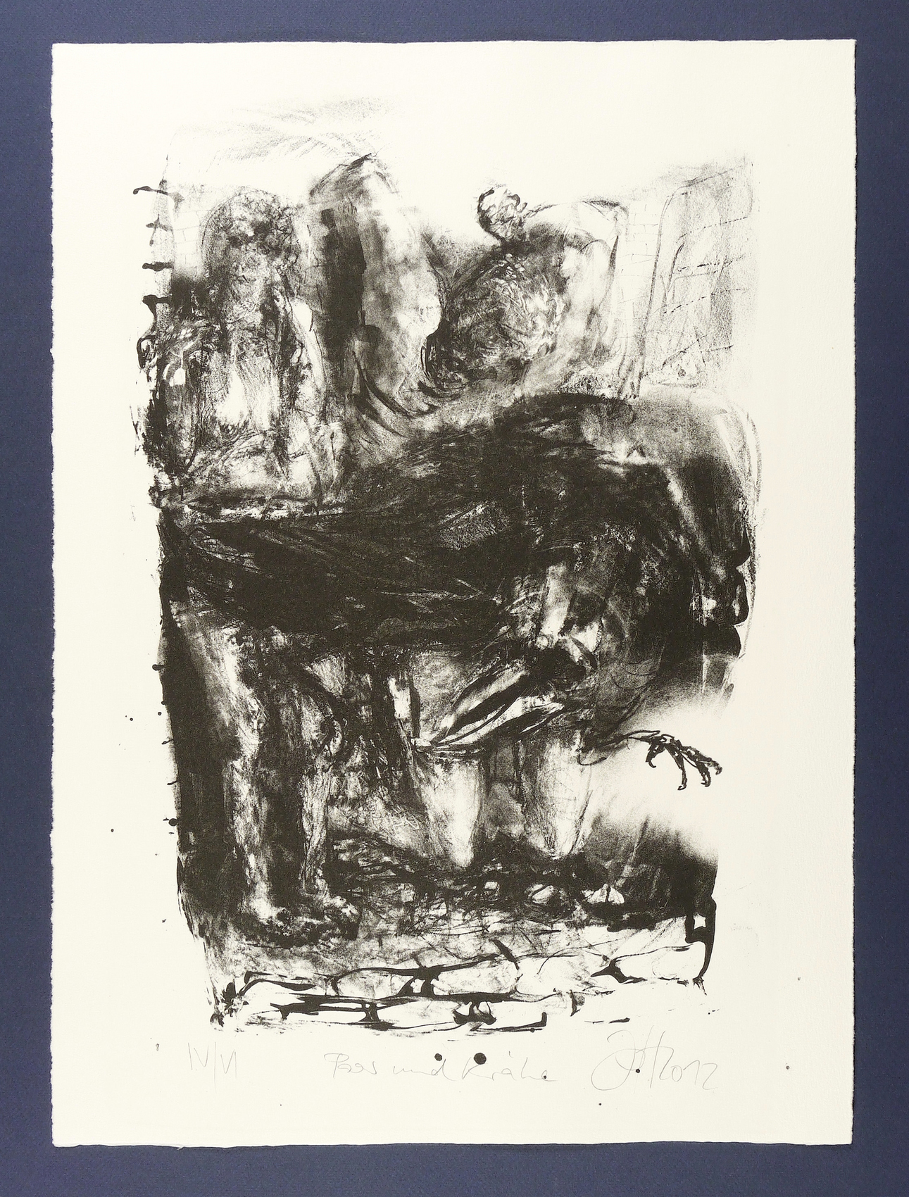 2012. Lithografie / Kreide- & Pinsellithografie, auf Hahnemühle-Bütten. – Von Johannes Heisig. – Auflage Exemplar Nr. IV/VI. – 47,5 x 31,0 cm (Darstellung / Druckbild), 53,5 x 39 cm (Blatt).