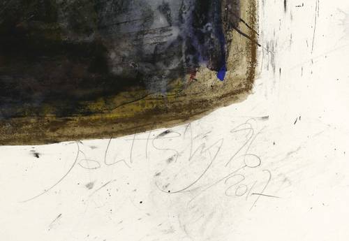 1996/2017. Mischtechnik / Fettkreide, Tusche, Aquarell & Gouache, über Lithografie, auf Bütten. – Originale Künstlergrafik, von Johannes Heisig. – Unikat. – 33,0 x 26,5 cm (Darstellung), 59 x 42 cm (Blatt).