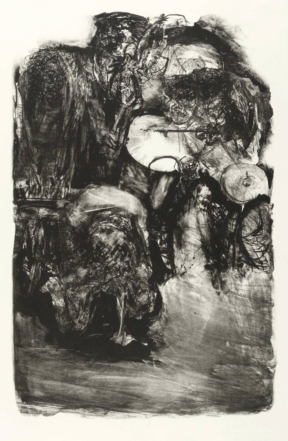 1991. Lithografie / Kreide- & Pinsellithografie, in Schwarz, auf schwerem Hahnemühle-Bütten. – Originale Künstlergrafik, von Johannes Heisig. – Auflage Exemplar Nr. 13/20. – 52,5 x 34,0 cm (Darstellung / Stein), 60 x 45 cm (Blatt).
