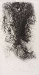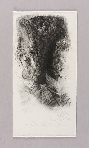 1997. Lithografie / Kreidelithografie, in Schwarz, auf hellchamois Velin. – Originale Künstlergrafik, von Johannes Heisig. – Auflage Exemplar Nr. 13/15. – 16,5 x 10,0 cm (Darstellung / Druckbild), 21 x 11 cm (Blatt).