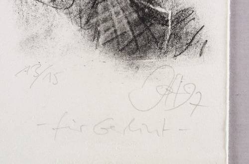 Rechts unten in Bleistift signiert und datiert: ″JoH 97″. Links Auflagenbezeichnung: ″13/15″. Darunter Neujahrsgruß des Künstlers. – Provenienz: Sammlung Gerlint Söder, Dresden. – Sehr guter Zustand.