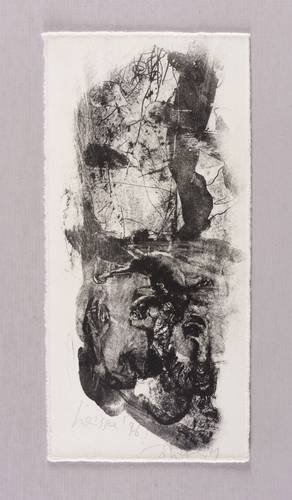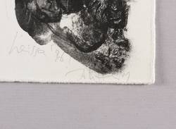 1996. Lithografie / Kreidelithografie, in Schwarz, auf hellchamois Velin. – Originale Künstlergrafik, von Johannes Heisig. – 20,6 x 9,1 cm (Darstellung / Druckbild), 21 x 11 cm (Blatt).