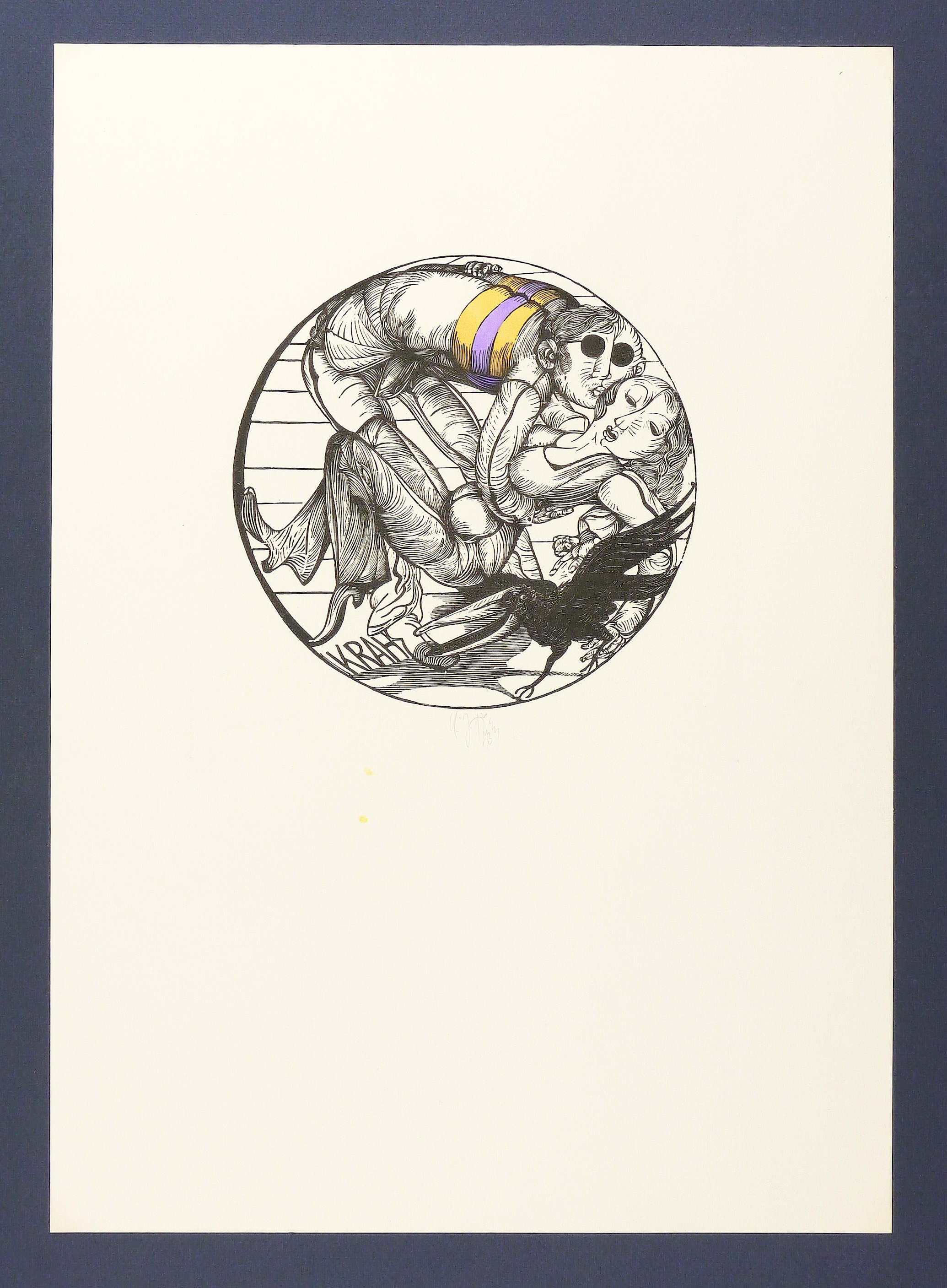 Unterhalb in Bleistift signiert und datiert. Im Druckstock Inschrift: ″KRAH″. – Sehr gut erhalten.