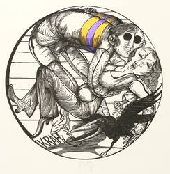 Karl-Georg Hirsch (*1938 Breslau, lebt und arbeitet bei Leipzig). Deutscher Grafiker. Lehre und Tätigkeit als Stuckateur. 1960-65 Studium an der Hochschule für Grafik und Buchkunst Leipzig (HGB). Ab 1965 freischaffend. 1967–70 Assistent an der HGB, seit 1970 Leiter der Werkstatt Holzschnitt, seit 1976 Dozent ebenda. 1981/82 Gastdozent für Holzschnitt und Holzstich an der finnischen Universität Jyväskylä. 1989 Berufung zum Professor für Grafik und Illustration an der HGB. 1990-97 Prorektor. Bekannt für seinen miniaturhaften, meisterhaft virtuosen Holzschnitt, den man in der DDR ob seiner extremen Schärfe und Kleinteiligkeit unrichtig als Holzstich bezeichnete.