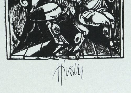 Karl-Georg Hirsch (*1938 Breslau, lebt und arbeitet bei Leipzig). Deutscher Grafiker. Lehre und Tätigkeit als Stuckateur. 1960-65 Studium an der Hochschule für Grafik und Buchkunst Leipzig (HGB). Ab 1965 freischaffend. 1967–70 Assistent an der HGB, seit 1970 Leiter der Werkstatt Holzschnitt, seit 1976 Dozent ebenda. 1981/82 Gastdozent für Holzschnitt und Holzstich an der finnischen Universität Jyväskylä. 1989 Berufung zum Professor für Grafik und Illustration an der HGB. 1990-97 Prorektor. Bekannt für seinen miniaturhaften, meisterhaft virtuosen Holzschnitt, den man in der DDR ob seiner extremen Schärfe und Kleinteiligkeit unrichtig als Holzstich bezeichnete.