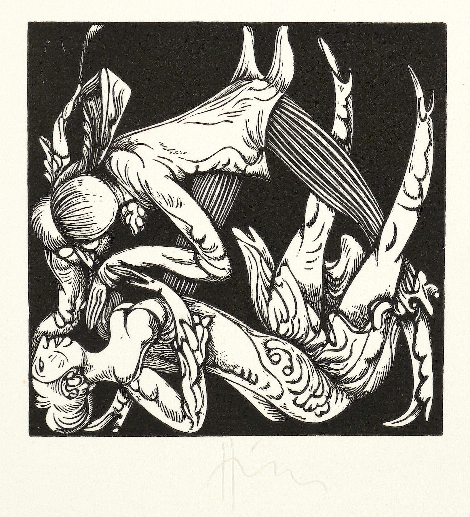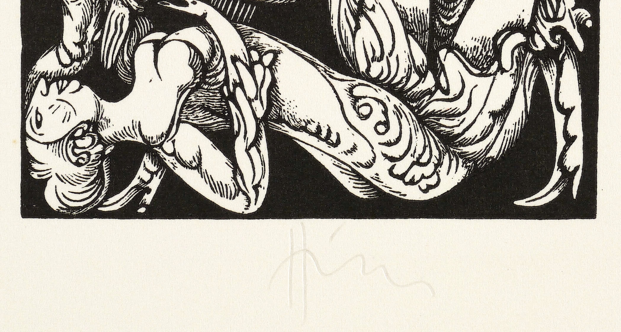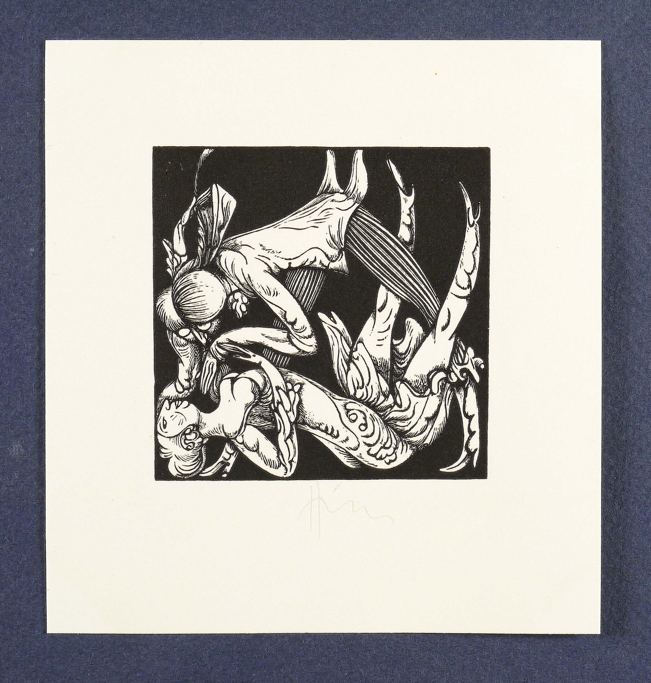 1974. Holzstich, in Schwarz, auf weißem Karton. – Originale Künstlergrafik, von Karl-Georg Hirsch. – 6,0 x 6,0 cm (Darstellung / Einfassungslinie), 11 x 10 cm (Blatt).