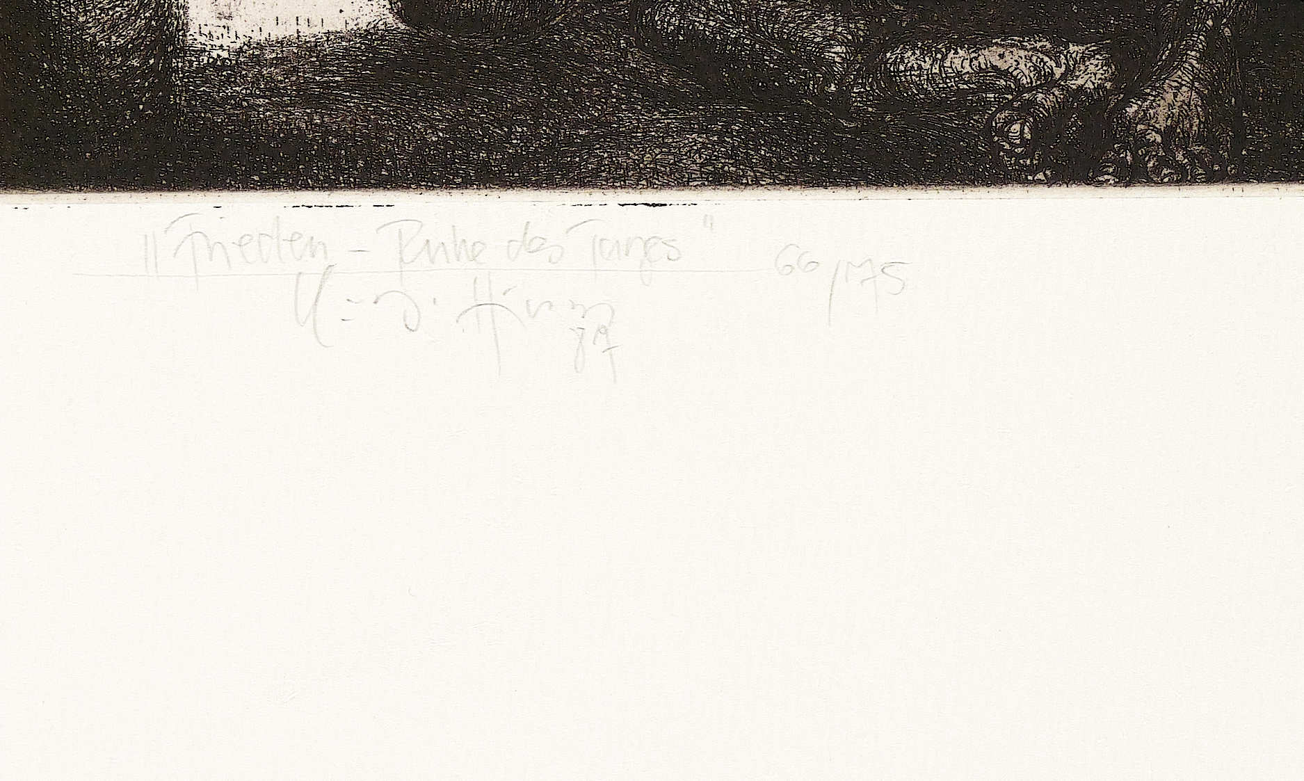 Unterhalb in Bleistift signiert, betitelt und datiert. Dazu Auflagenbezeichnung. In der Platte links oben zusätzlich spiegelverkehrt Titel, Signatur und Jahr. – Tadelloses Exemplar.