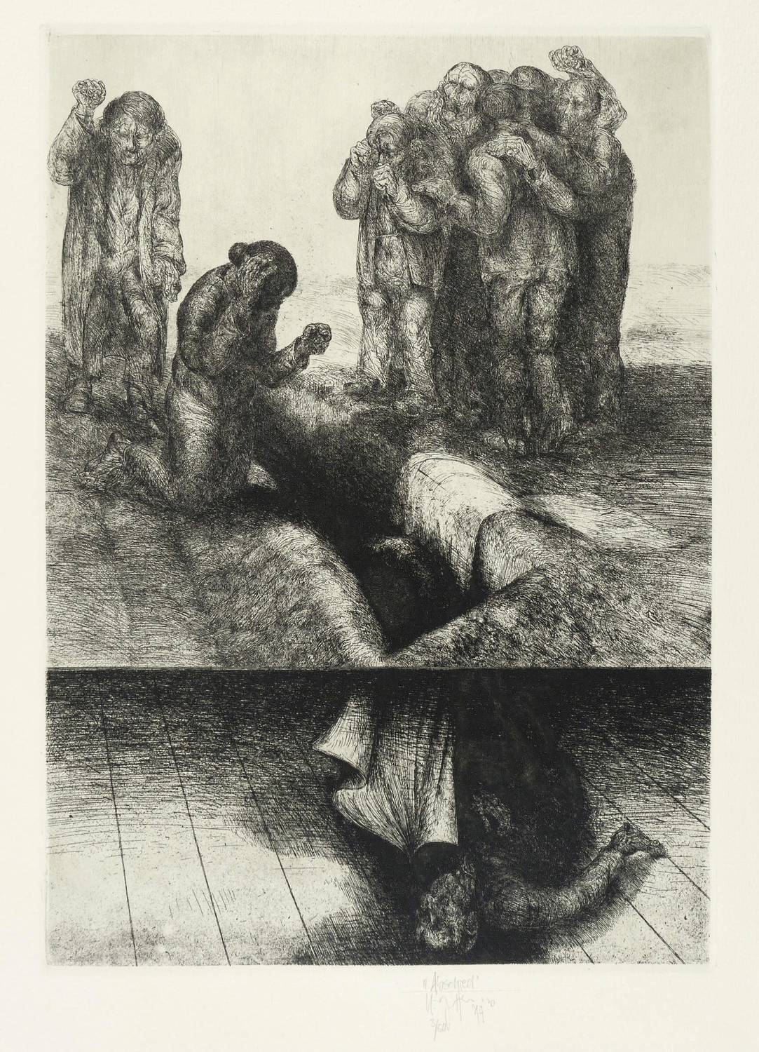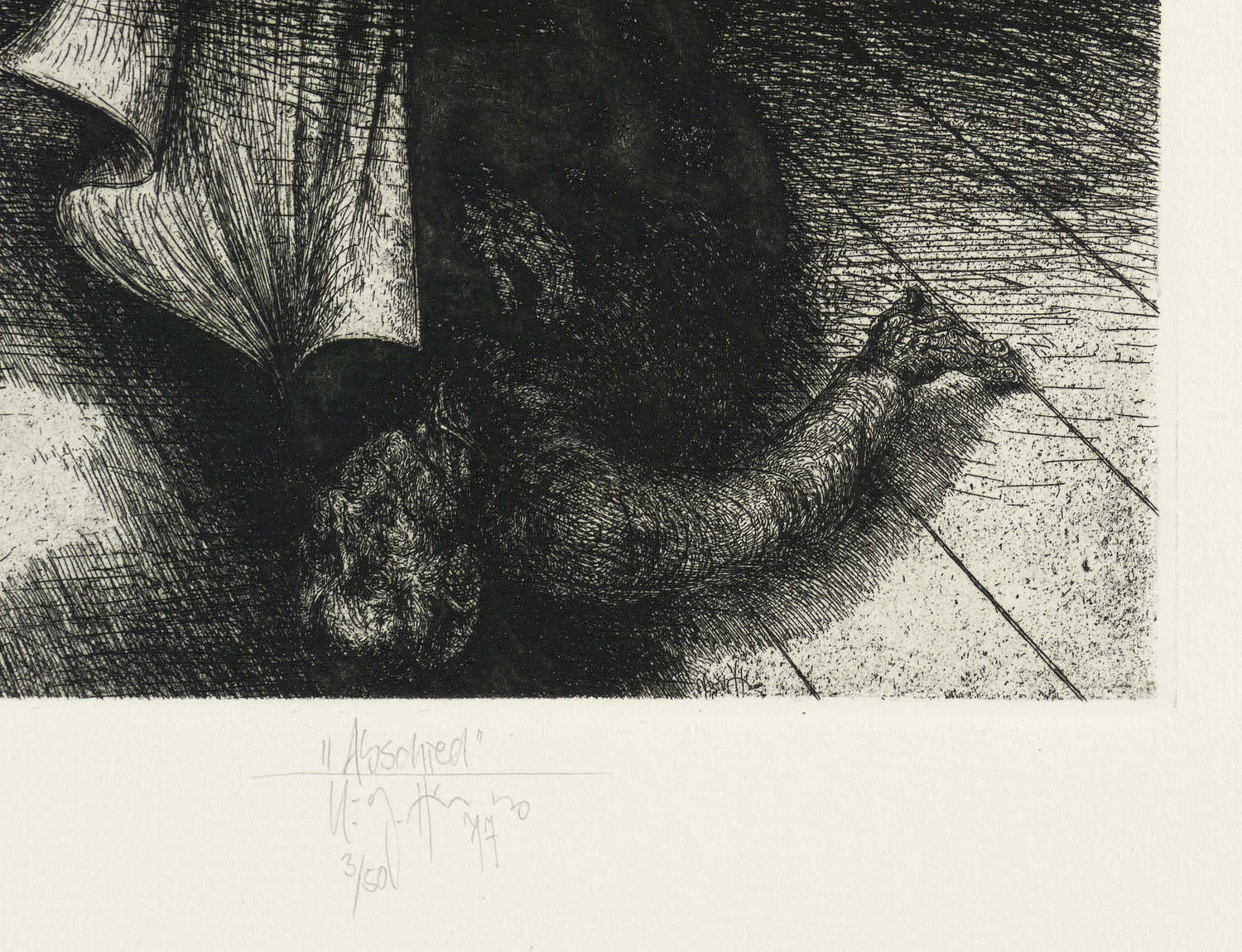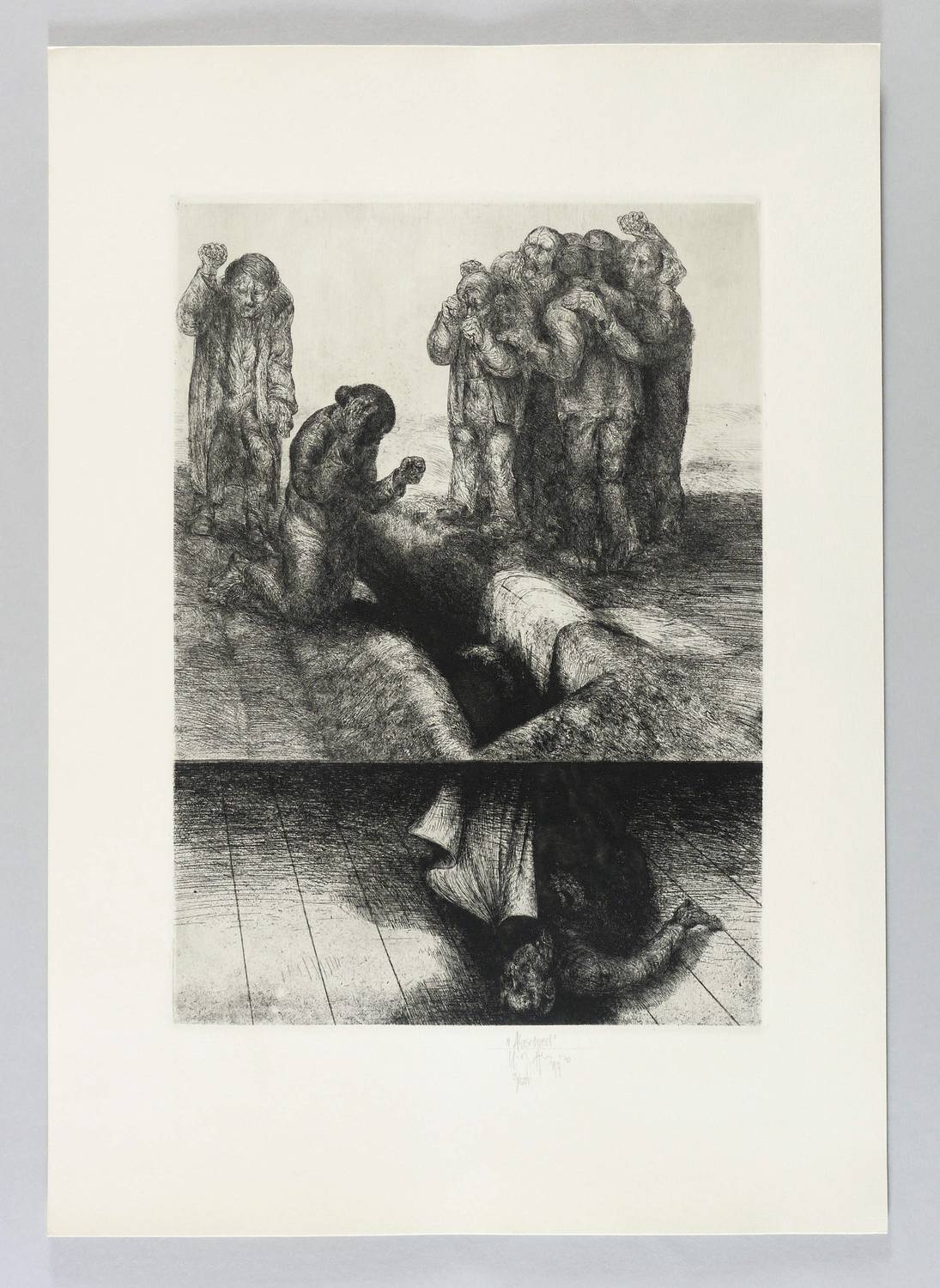 1977. Radierung / Strichätzung, mit Plattenton, in Schwarz, auf Karton. – Von Karl-Georg Hirsch. – Auflage Exemplar Nr. 3/50. – 33,5 x 24,0 cm (Darstellung / Platte), 48 x 34 cm (Blatt).