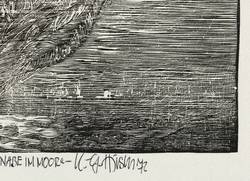 Karl-Georg Hirsch (*1938 Breslau, lebt und arbeitet bei Leipzig). Deutscher Grafiker. Lehre und Tätigkeit als Stuckateur. 1960-65 Studium an der Hochschule für Grafik und Buchkunst Leipzig (HGB). Ab 1965 freischaffend. 1967–70 Assistent an der HGB, seit 1970 Leiter der Werkstatt Holzschnitt, seit 1976 Dozent ebenda. 1981/82 Gastdozent für Holzschnitt und Holzstich an der finnischen Universität Jyväskylä. 1989 Berufung zum Professor für Grafik und Illustration an der HGB. 1990-97 Prorektor. Bekannt für seinen miniaturhaften, meisterhaft virtuosen Holzschnitt, den man in der DDR ob seiner extremen Schärfe und Kleinteiligkeit unrichtig als Holzstich bezeichnete.