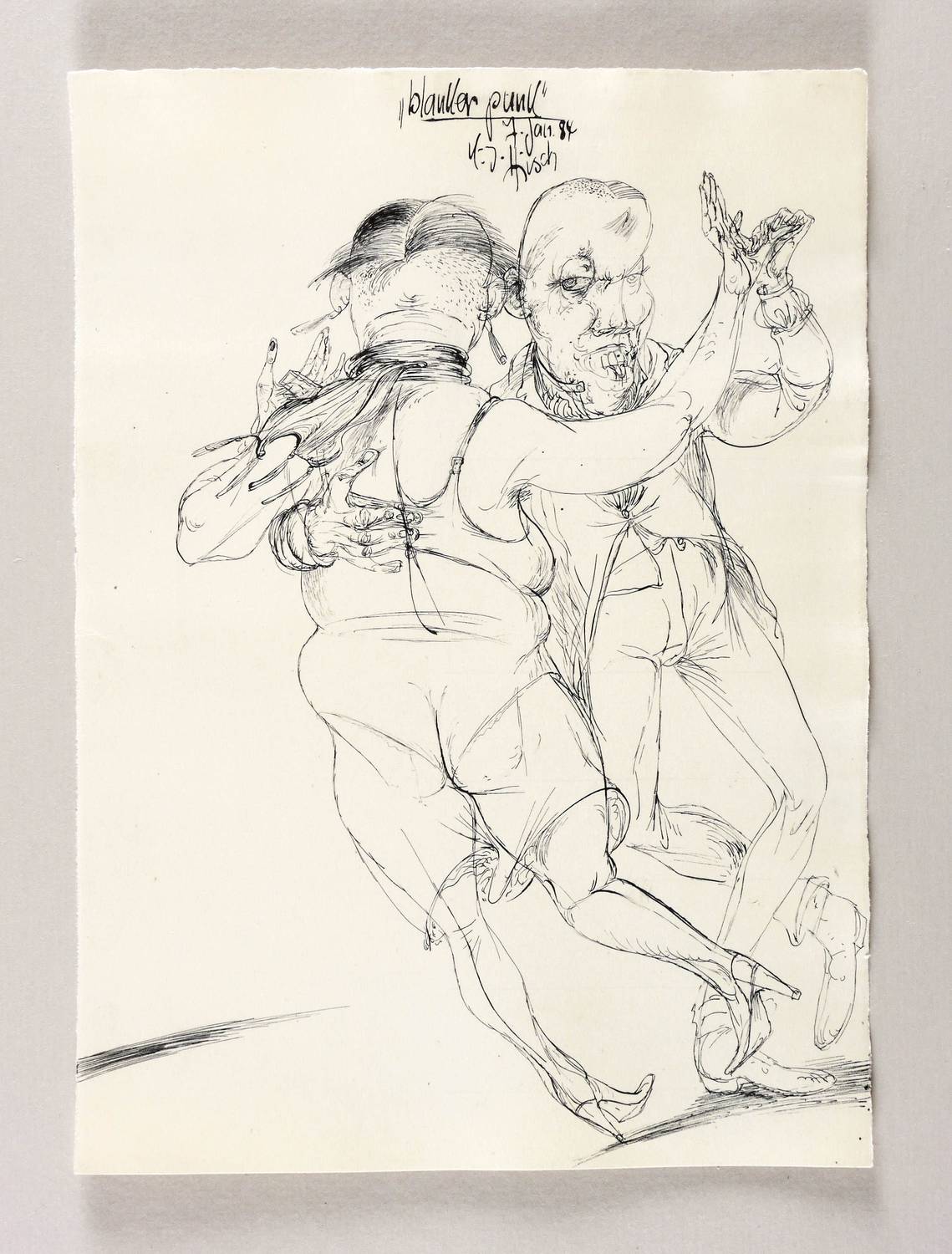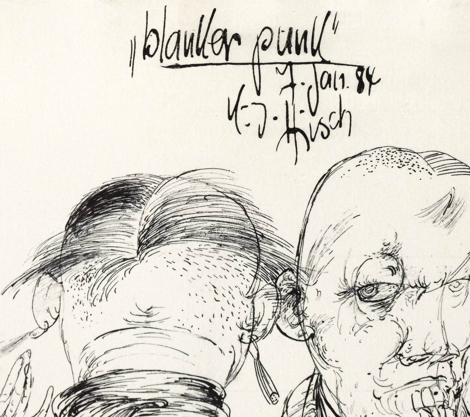 Oberhalb in schwarzer Feder betitelt, signiert und datiert: ″blanker punk / 7. Jan. 84 / K.-G. Hirsch″. – Tadelloses Exemplar.