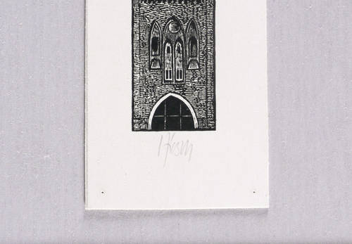 1970-1980. Holzschnitt, in Schwarz, auf weißem Karton. – Originale Künstlergrafik, von Karl-Georg Hirsch. – 8,2 x 2,0 cm (Darstellung / Druckbild), 10,7 x 3,9 cm (Blatt).