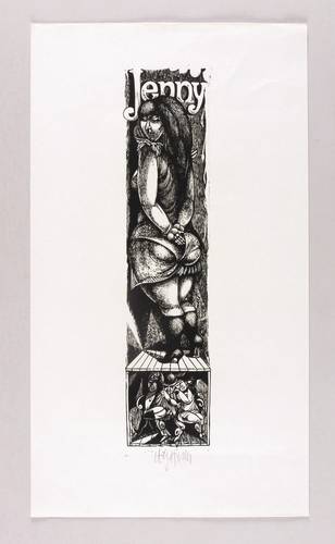 Aus: Karl-Georg Hirsch, Die Dreigroschenoper. 10 Holzschnitte (Leipzig: 1971). – Unterhalb in Bleistift signiert: ″K.G. Hirsch″. Im Druckstock Inschrift: ″Jenny″. – Sehr guter Zustand.