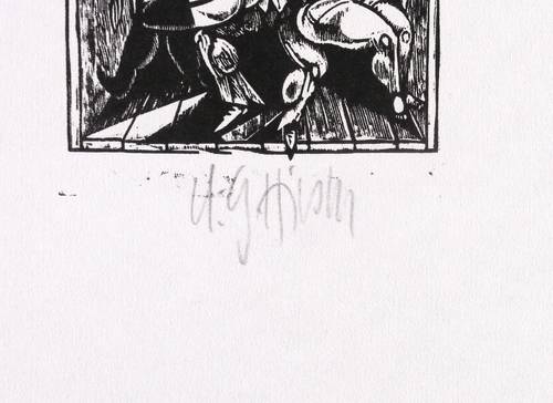 Karl-Georg Hirsch (*1938 Breslau, lebt und arbeitet bei Leipzig). Deutscher Grafiker. Lehre und Tätigkeit als Stuckateur. 1960-65 Studium an der Hochschule für Grafik und Buchkunst Leipzig (HGB). Ab 1965 freischaffend. 1967–70 Assistent an der HGB, seit 1970 Leiter der Werkstatt Holzschnitt, seit 1976 Dozent ebenda. 1981/82 Gastdozent für Holzschnitt und Holzstich an der finnischen Universität Jyväskylä. 1989 Berufung zum Professor für Grafik und Illustration an der HGB. 1990-97 Prorektor. Bekannt für seinen miniaturhaften, meisterhaft virtuosen Holzschnitt, den man in der DDR ob seiner extremen Schärfe und Kleinteiligkeit unrichtig als Holzstich bezeichnete.