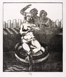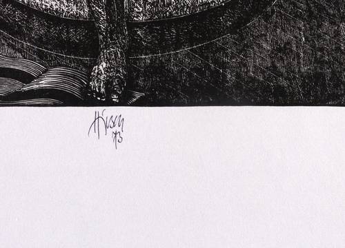 Karl-Georg Hirsch (*1938 Breslau, lebt und arbeitet bei Leipzig). Deutscher Grafiker. Lehre und Tätigkeit als Stuckateur. 1960-65 Studium an der Hochschule für Grafik und Buchkunst Leipzig (HGB). Ab 1965 freischaffend. 1967–70 Assistent an der HGB, seit 1970 Leiter der Werkstatt Holzschnitt, seit 1976 Dozent ebenda. 1981/82 Gastdozent für Holzschnitt und Holzstich an der finnischen Universität Jyväskylä. 1989 Berufung zum Professor für Grafik und Illustration an der HGB. 1990-97 Prorektor. Bekannt für seinen miniaturhaften, meisterhaft virtuosen Holzschnitt, den man in der DDR ob seiner extremen Schärfe und Kleinteiligkeit unrichtig als Holzstich bezeichnete.