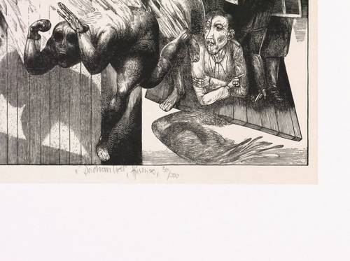Karl-Georg Hirsch (*1938 Breslau, lebt und arbeitet bei Leipzig). Deutscher Grafiker. Lehre und Tätigkeit als Stuckateur. 1960-65 Studium an der Hochschule für Grafik und Buchkunst Leipzig (HGB). Ab 1965 freischaffend. 1967–70 Assistent an der HGB, seit 1970 Leiter der Werkstatt Holzschnitt, seit 1976 Dozent ebenda. 1981/82 Gastdozent für Holzschnitt und Holzstich an der finnischen Universität Jyväskylä. 1989 Berufung zum Professor für Grafik und Illustration an der HGB. 1990-97 Prorektor. Bekannt für seinen miniaturhaften, meisterhaft virtuosen Holzschnitt, den man in der DDR ob seiner extremen Schärfe und Kleinteiligkeit unrichtig als Holzstich bezeichnete.