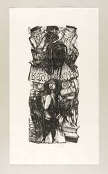 1971. Holzschnitt, in Schwarz, auf weißlichem rauem Similijapan. – Originale Künstlergrafik, von Karl-Georg Hirsch. – 49,5 x 21,5 cm (Darstellung / Druckbild), 66 x 38 cm (Blatt).