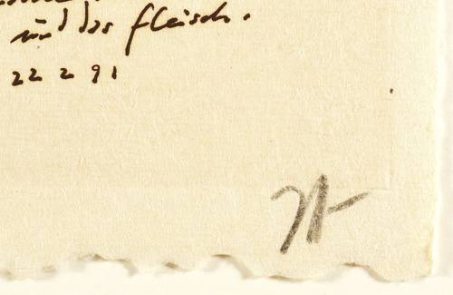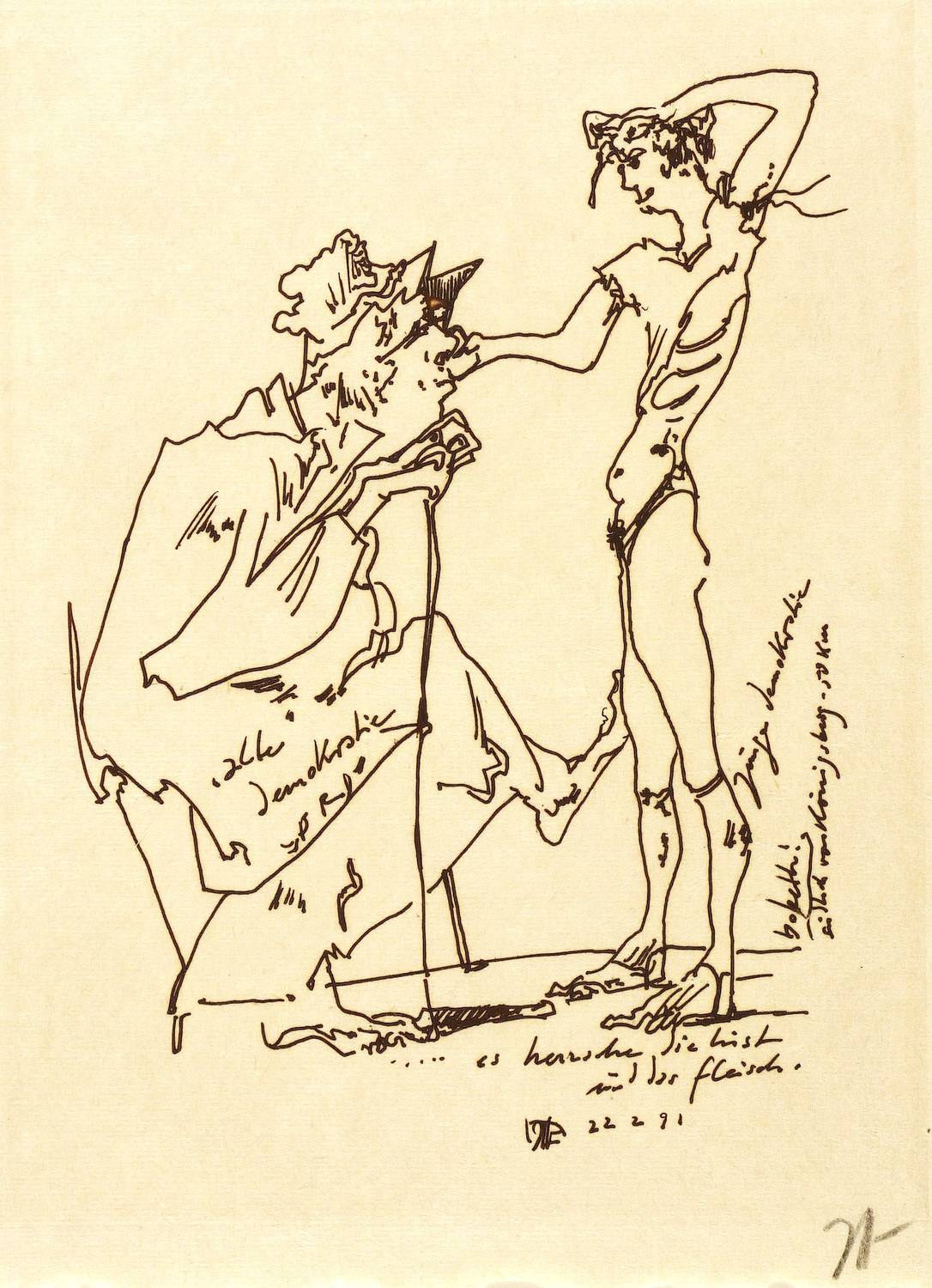 1991. Radierung / Strichätzung, in Braunschwarz, auf chamois rauem Japanbütten. – Originale Künstlergrafik, von Horst Janssen. – 25,4 x 19,2 cm (Darstellung / Platte), 28 x 22 cm (Blatt).