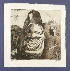 1982. Radierung / Strichätzung & Aquatinta, in Schwarz, auf hellgelbem grobfasrigem Japanbütten. – Originale Künstlergrafik, von Horst Janssen. – Auflage Exemplar Nr. 89/100. – 22,8 x 22,9 cm (Darstellung / Platte), 29 x 28 cm (Blatt).