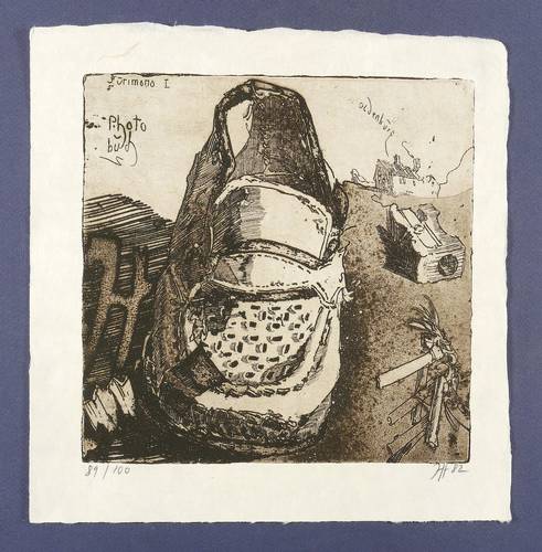 Rechts unten in Bleistift signiert und datiert: ″JH 82″. Links Auflagenbezeichnung. In der Platte links und rechts oben bezeichnet: ″Surimono I / Photobuch / Oldenburg″. – Sehr gut erhalten.