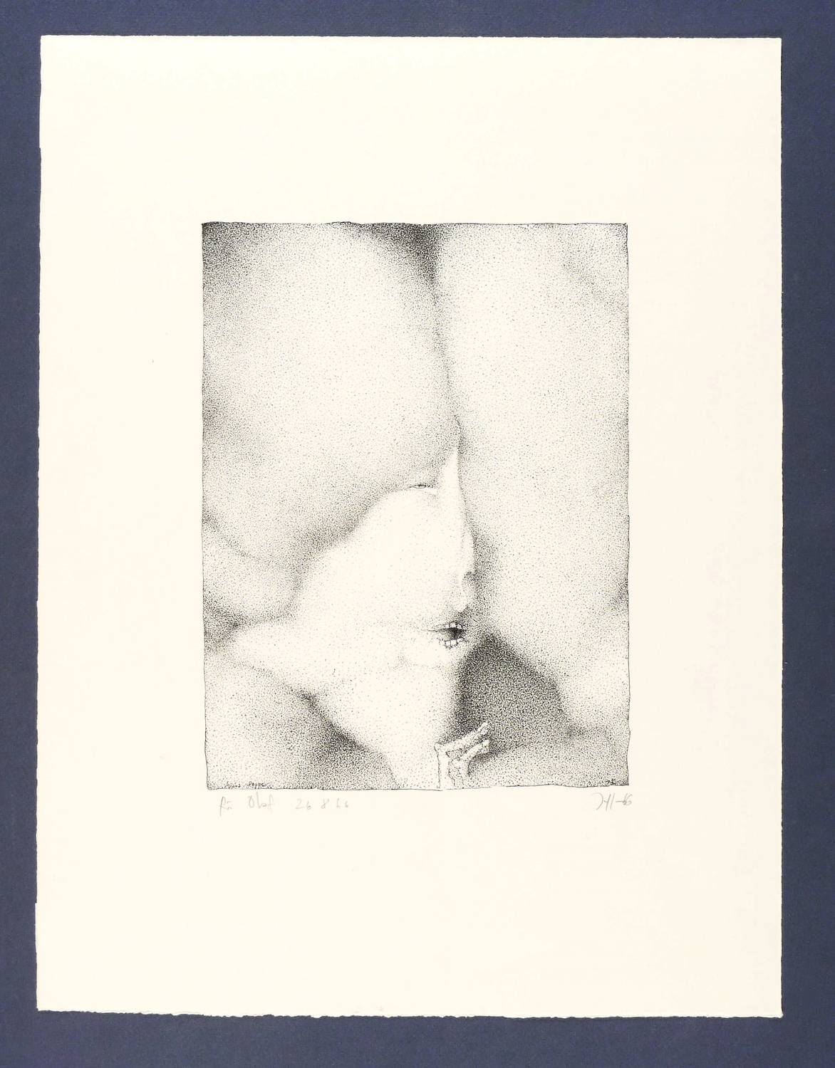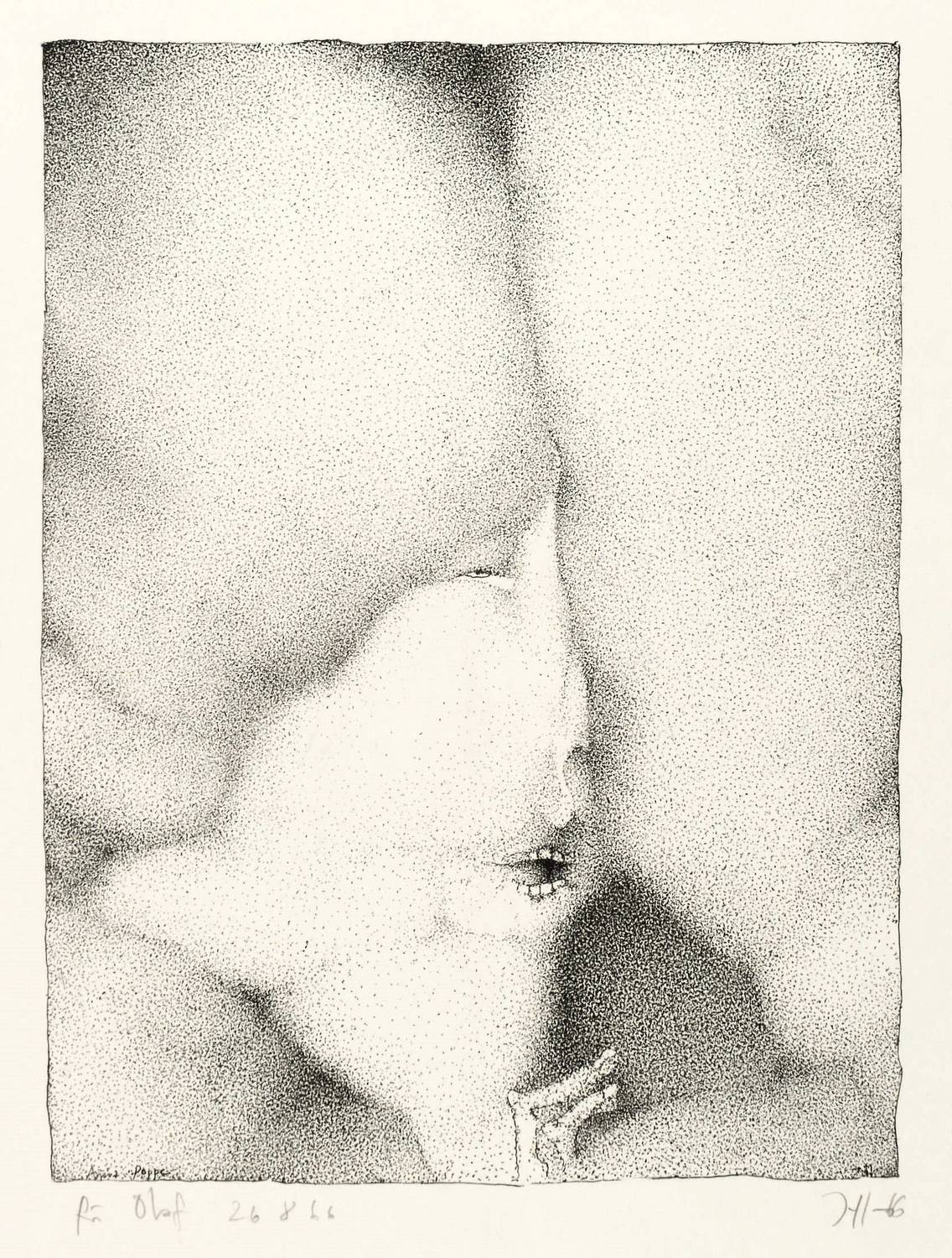 1966. Lithografie / Federlithografie, in Schwarz, auf hellchamois Büttenpapier. – Originale Künstlergrafik, von Horst Janssen. – 29,0 x 21,8 cm (Darstellung), 51 x 38 cm (Blatt).