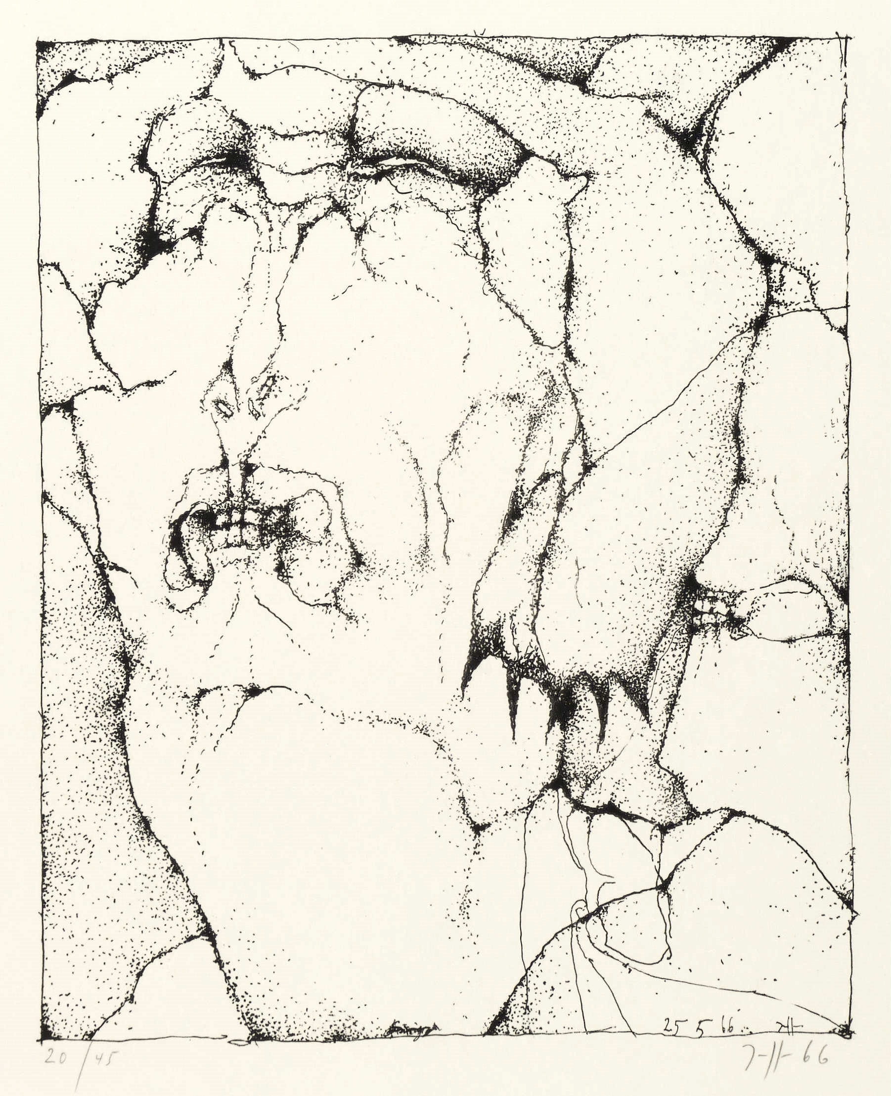 1966. Lithografie / Federlithografie, in Schwarz, auf hellchamois Büttenpapier. – Originale Künstlergrafik, von Horst Janssen. – Auflage Exemplar Nr. 20/45. – 26,6 x 21,4 cm (Darstellung), 51 x 38 cm (Blatt).