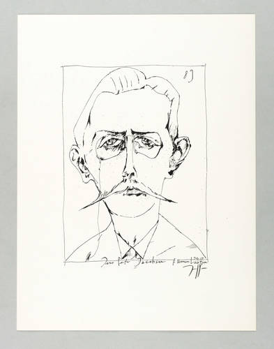 Nicht bei Frielinghaus. – Rechts unten in Bleistift signiert. In der Darstellung darüber zusätzlich Signatur und Jahr: ″Janssen 67″. Dazu weitere Inschriften. – Blatt Nr. 89 aus der Serie ″Dichterköpfe″ für die Buchhandlung von Hermann Laatzen. – Ohne Mängel. Sehr guter Zustand.