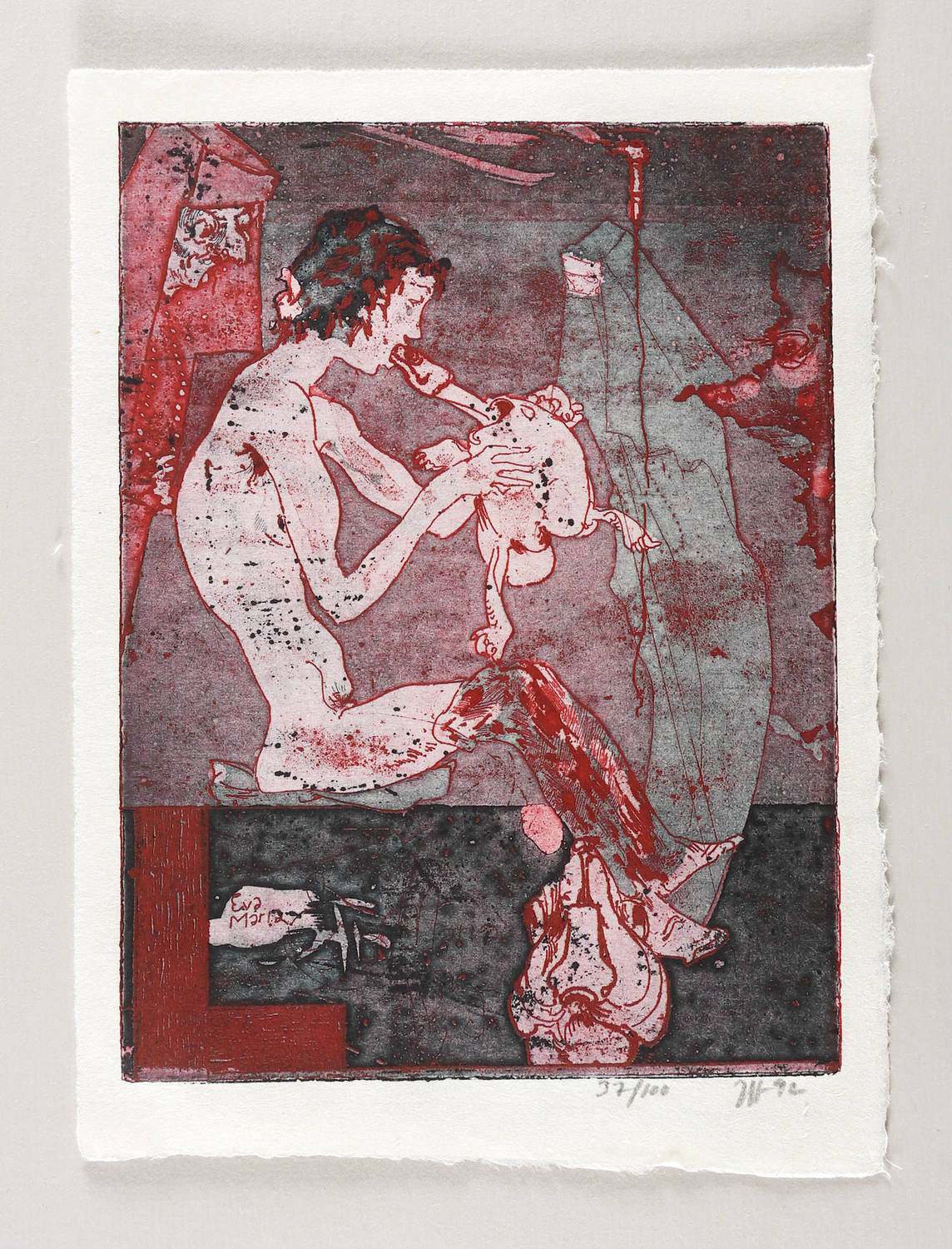 Rechts unten in Bleistift signiert und datiert: ″Janssen 92″. Dazu eigenhändige Auflagenbezeichnung. In der Platte links unten Inschrift: ″Eva Maria″. – Herausragendes Blatt. – Tadellos erhalten. Sehr guter Zustand.