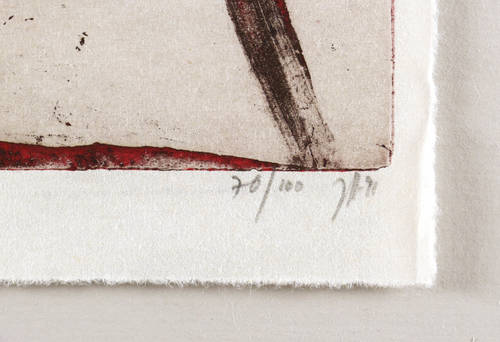 1991. Farbradierung / Aquatinta & Strichätzung, in Rot & Schwarz, auf chamois Simili-Japan. – Von Horst Janssen. – Auflage Exemplar Nr. 70/100. – 29,5 x 20,9 cm (Darstellung / Platte), 34 x 23 cm (Blatt).
