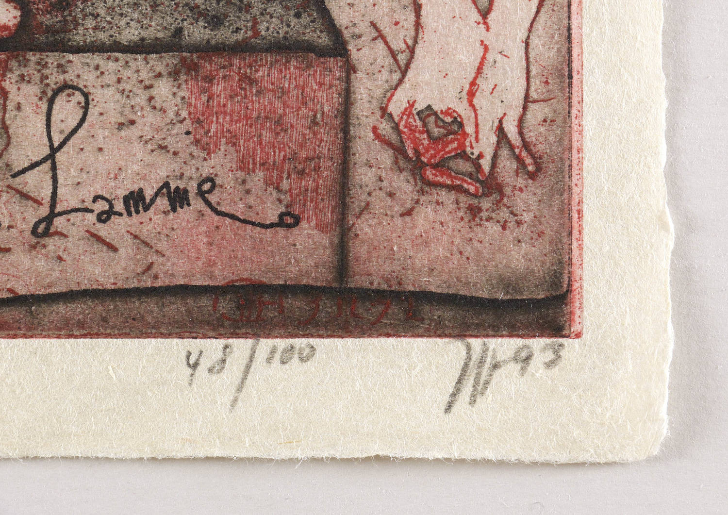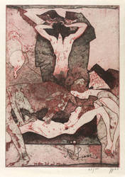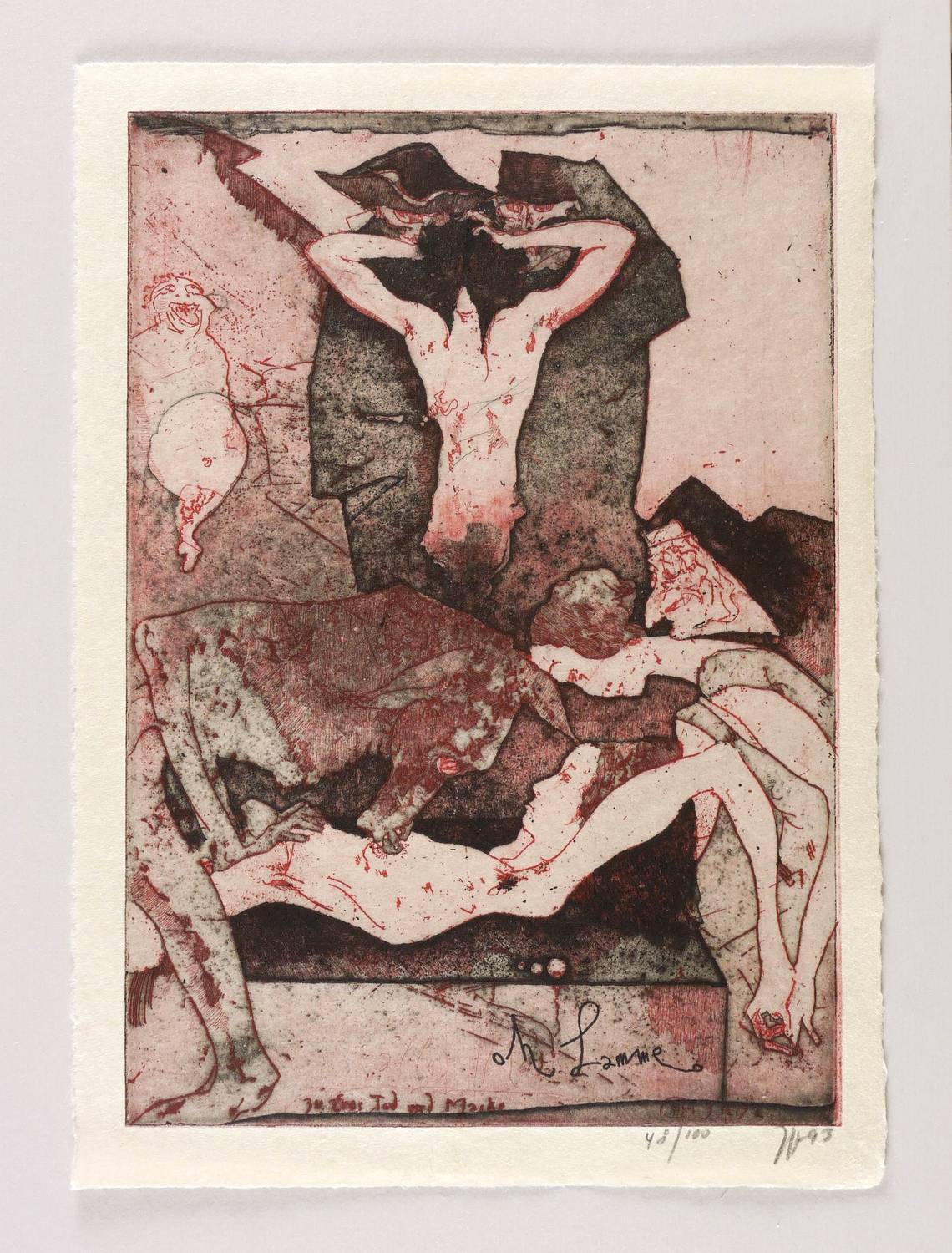 Rechts unten in Bleistift signiert und datiert: ″Janssen 93″. Dazu eigenhändige Auflagenbezeichnung. In der Platte diverse Inschriften: ″oh Lamme // zu Eros Tod und Maske″. – Dichtes, herausragendes Blatt. – Tadellos erhalten. Sehr guter Zustand.