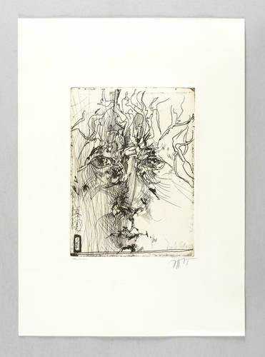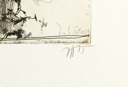 1975. Radierung / Strichätzung & Kaltnadel, in Schwarz, mit leichtem Plattenton, auf hellchamois Velin. – Originale Künstlergrafik, von Horst Janssen. – Auflage Exemplar Nr. 1942/10000. – 22,4 x 16,4 cm (Darstellung / Platte), 42 x 30 cm (Blatt).