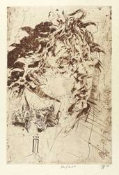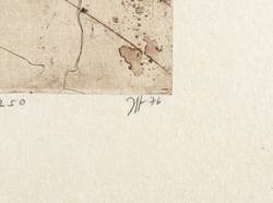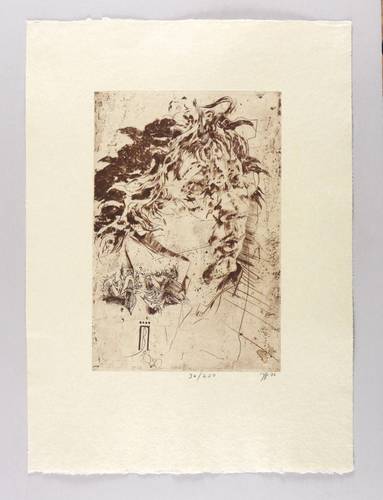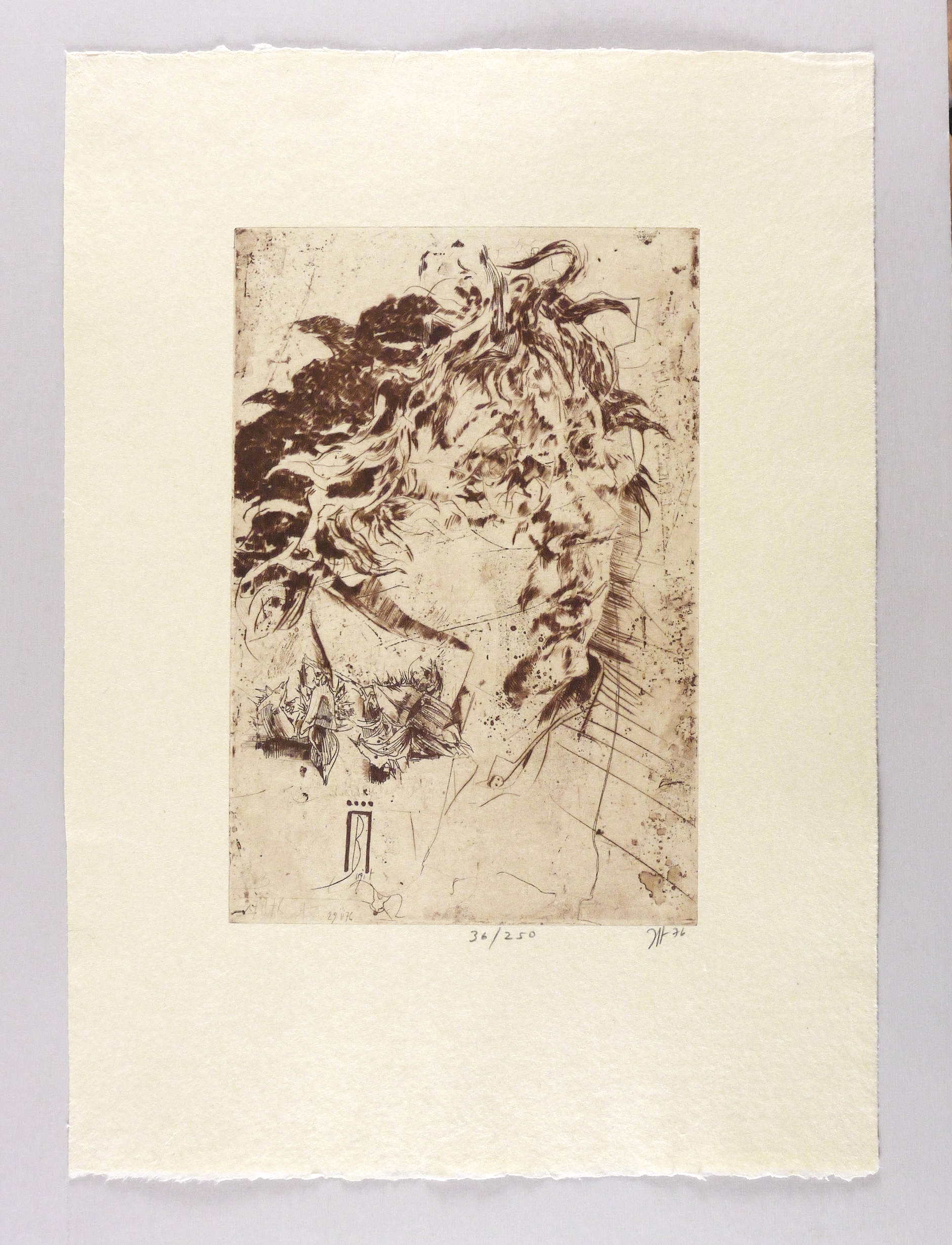 1976. Radierung / Strichätzung, in Sepia, mit Plattenton, auf grobfasrigem chamois Japan. – Originale Künstlergrafik, von Horst Janssen. – Auflage Exemplar Nr. 36/250. – 39,0 x 26,3 cm (Darstellung / Platte), 64 x 46 cm (Blatt).