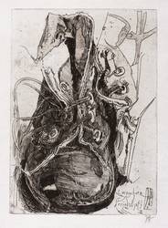 1982. Radierung / Strichätzung, Aquatinta & Kaltnadel, in Schwarz, auf rauem hellchamois Japan. – Originale Künstlergrafik, von Horst Janssen. – 29,6 x 21,0 cm (Darstellung / Platte), 44 x 32 cm (Blatt).