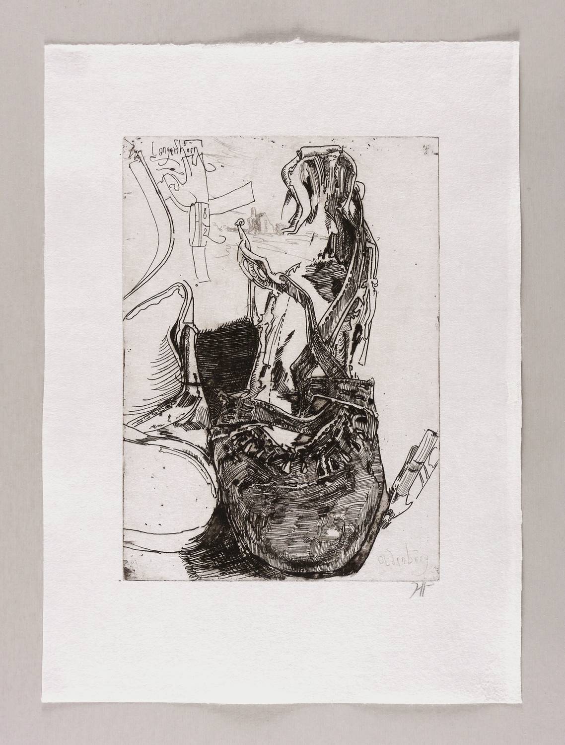 1982. Radierung / Strichätzung & Kaltnadel, in Schwarz, auf rauem hellchamois Japan. – Originale Künstlergrafik, von Horst Janssen. – 29,5 x 21,0 cm (Darstellung / Platte), 44 x 32 cm (Blatt).