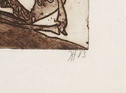 1983. Radierung / Strichätzung & Aquatinta, in Schwarzviolett, auf feinstem hellchamois Bütten. – Originale Künstlergrafik, von Horst Janssen. – Auflage Exemplar Nr. 33/60. – 16,0 x 11,4 cm (Darstellung / Platte), 23 x 17 cm (Blatt).