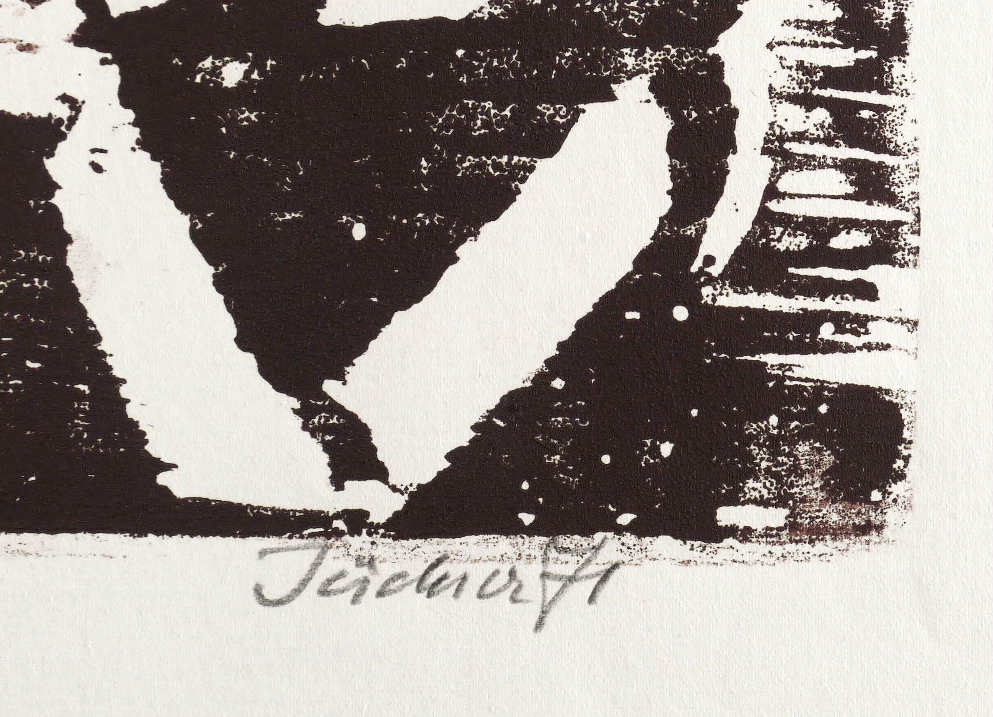 Rechts unten in Bleistift signiert und datiert: ″Jüchser 71″. Links Auflagenbezeichnung. – Unscheinbare Knickspur in der Mitte des linken Randes. Sonst schönes Exemplar. Guter Zustand.