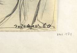 1960. Zeichnung / Graphit, auf leichtem gelblichem Maschinenpapier. – Originale Künstlergrafik, von Hans Jüchser. – Unikat. – 20,3 x 14,6 cm (Darstellung / Blatt), 32 x 24 cm (Trägerkarton).