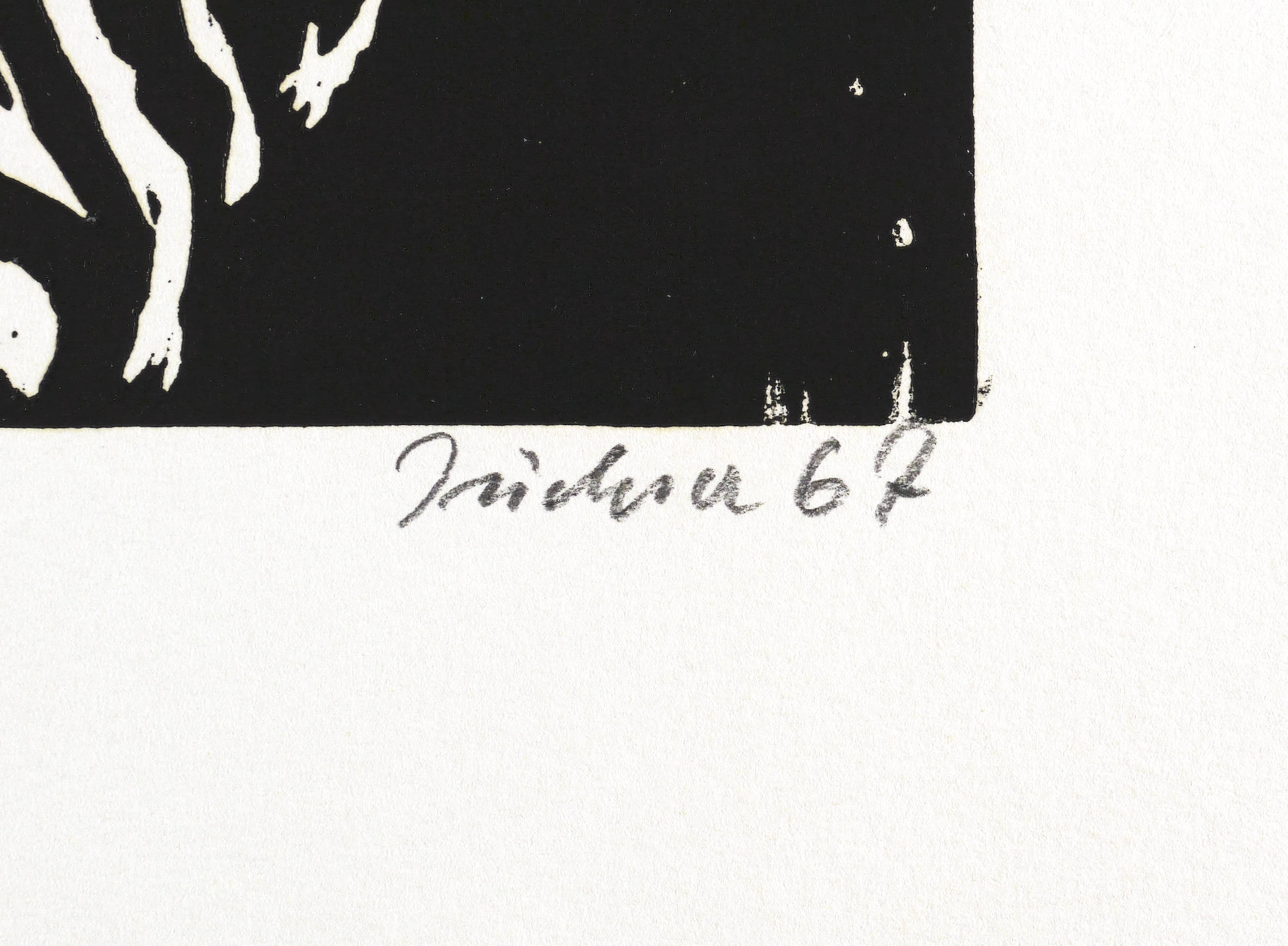 1967. Holzschnitt, in Schwarz, auf hellchamois Weißenborn. – Originale Künstlergrafik, von Hans Jüchser. – Auflage Exemplar Nr. 42/82. – 38,0 x 27,8 cm (Darstellung / Druckstock), 50 x 38 cm (Blatt).