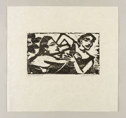 1971. Holzschnitt, in Schwarz, auf wolkigem hellchamois Similijapan. – Originale Künstlergrafik, von Hans Jüchser. – Auflage Exemplar Nr. 26/70. – 16,1 x 27,5 cm (Darstellung / Druckstock), 41 x 42 cm (Blatt).