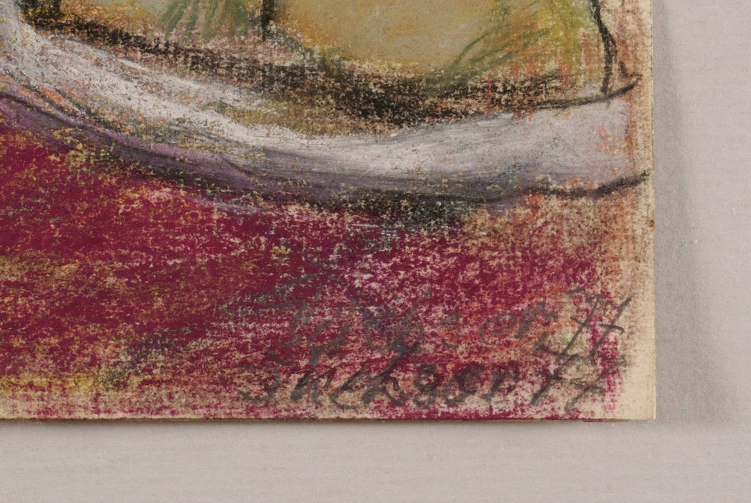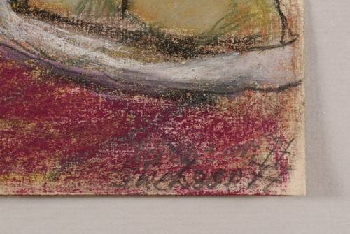 1977. Pastellkreide, auf festem hellchamois Velinkarton. – Originale Künstlergrafik, von Hans Jüchser. – Unikat. – 32,0 x 24,0 cm (Darstellung / Blatt).