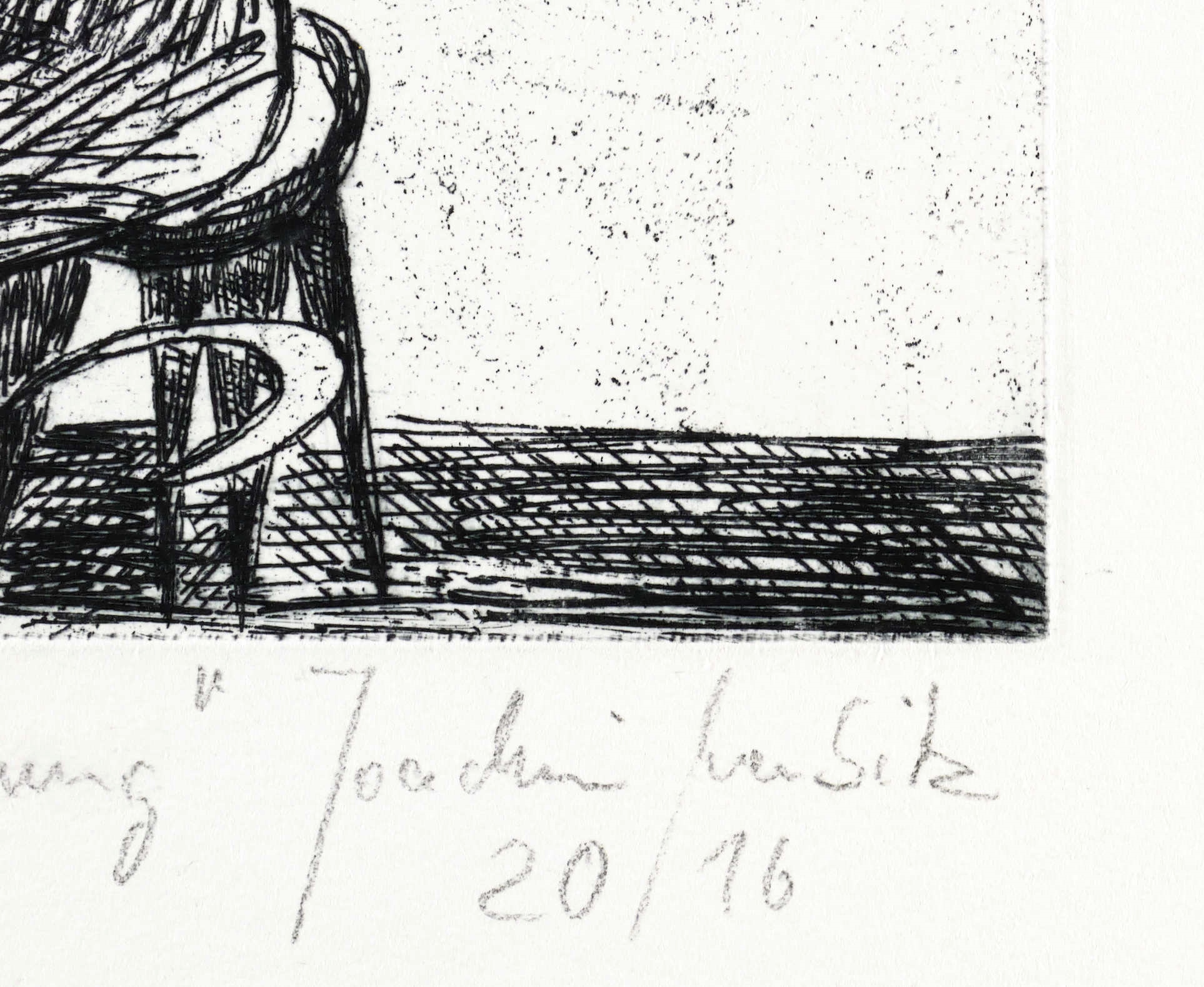2016. Radierung / Strichätzung, in Schwarz, auf Hahnemühle-Bütten. – Von Joachim Merbitz. – Auflage Exemplar Nr. 8/10. – 20,8 x 14,4 cm (Darstellung / Platte), 39 x 28 cm (Blatt).