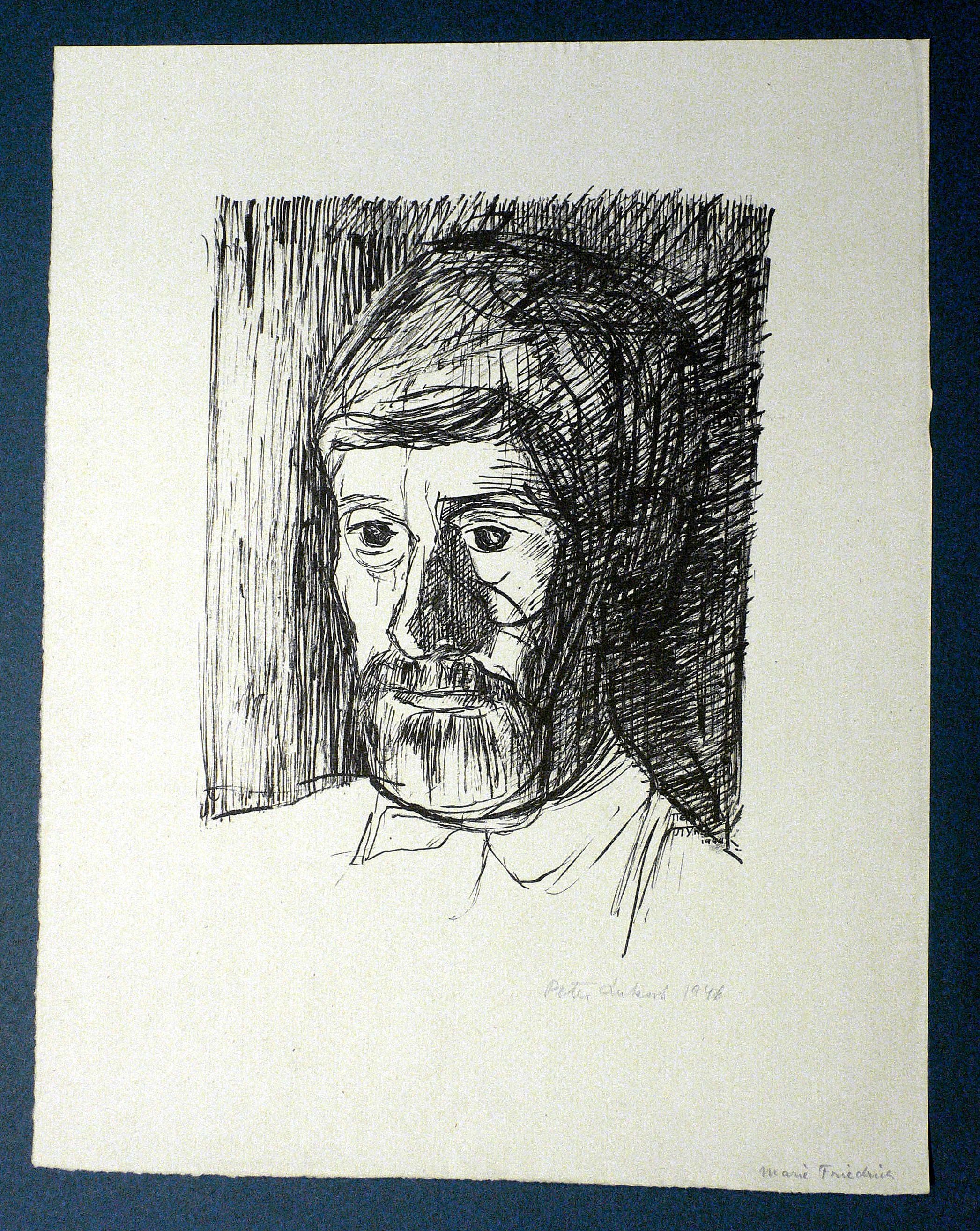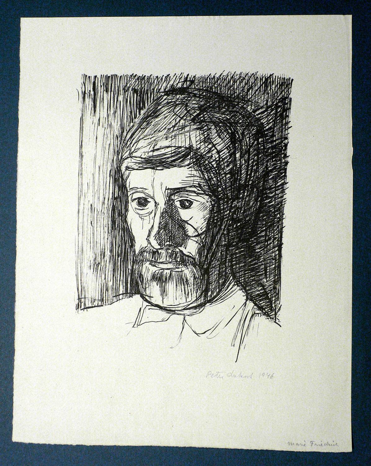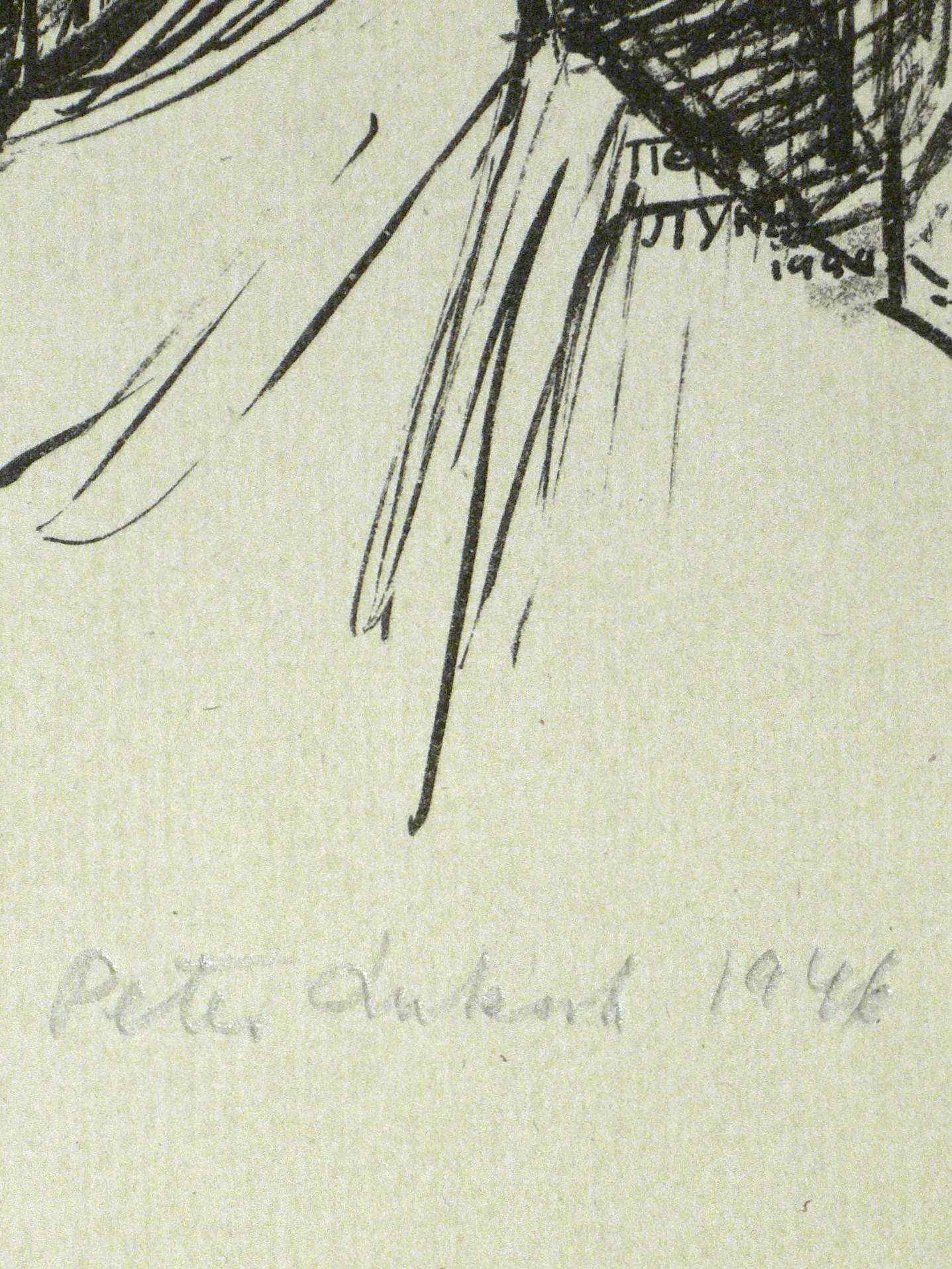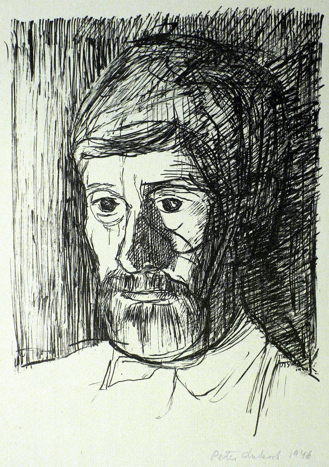 1944/1946. Lithografie / Federlithografie, in Schwarz, auf Büttenpapier. – Originale Künstlergrafik, von Peter Luksch. – 26,8 x 19,9 cm (Darstellung), 40 x 31 cm (Blatt).