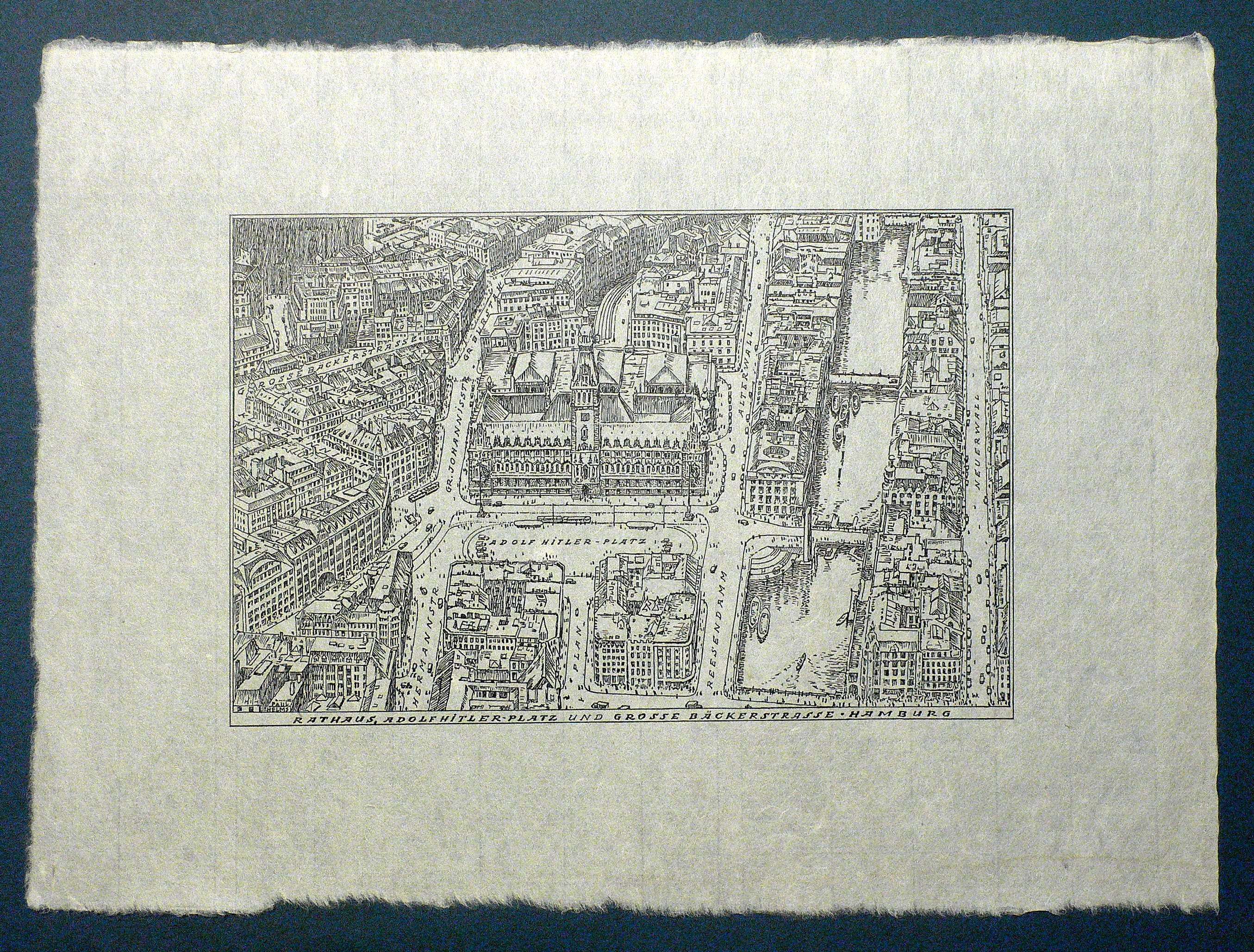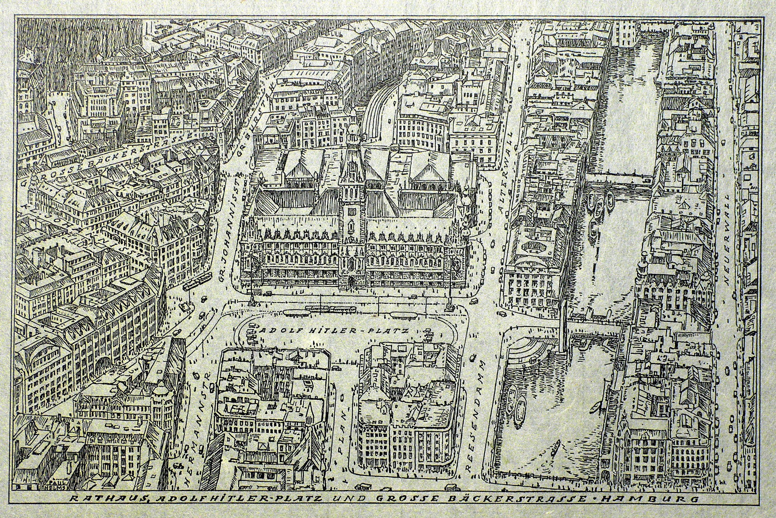 Helms, Paul. – „Rathaus, Adolf Hitler-Platz und grosse Bäckerstrasse, Hamburg”.