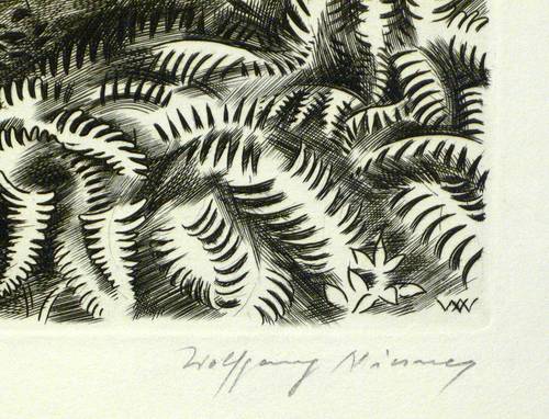 Wolfgang Niesner (1925 Freudenthal - 1994 München). Deutscher Zeichner und Grafiker. 1942-43 Studium an der Hochschule für angewandte Kunst in Wien. 1946 Neuansiedlung in Niederbayern. 1947 erste Holzschnitte und Radierungen. Ab 1950 als Grafiker freischaffend in München. 1955 erste Kupferstiche. Ab 1970 Atelier und Druckwerkstatt in dem neuen Stadtteil München-Neuperlach. 1975-81 Vorsitzender des Vereins für Original-Radierung München.